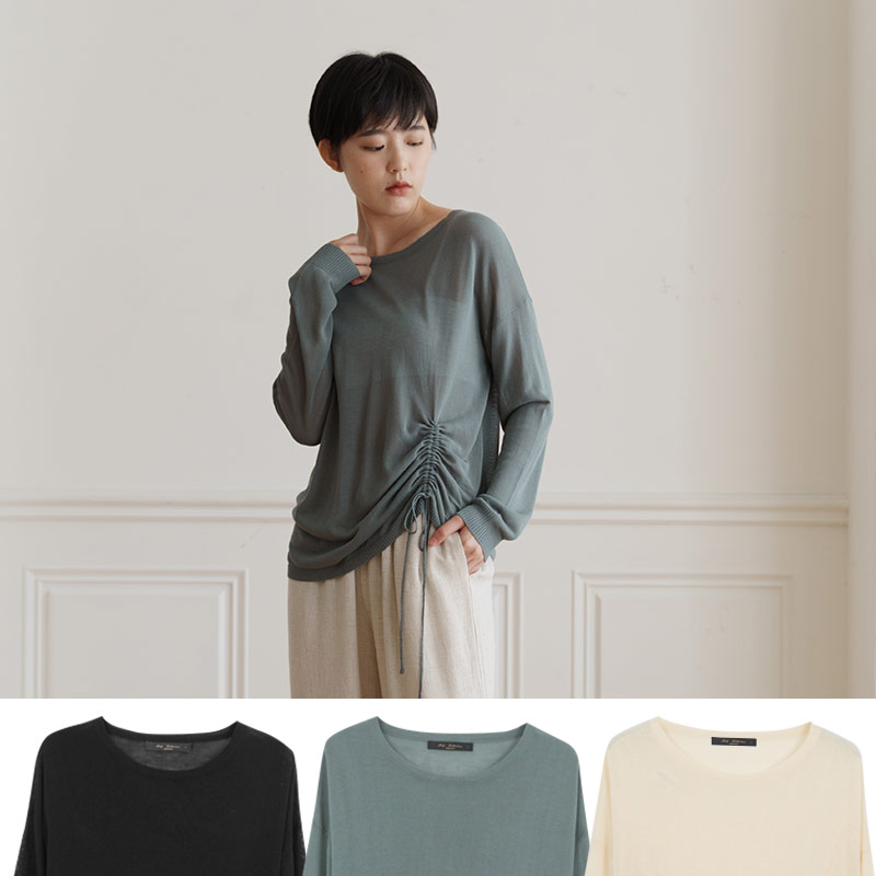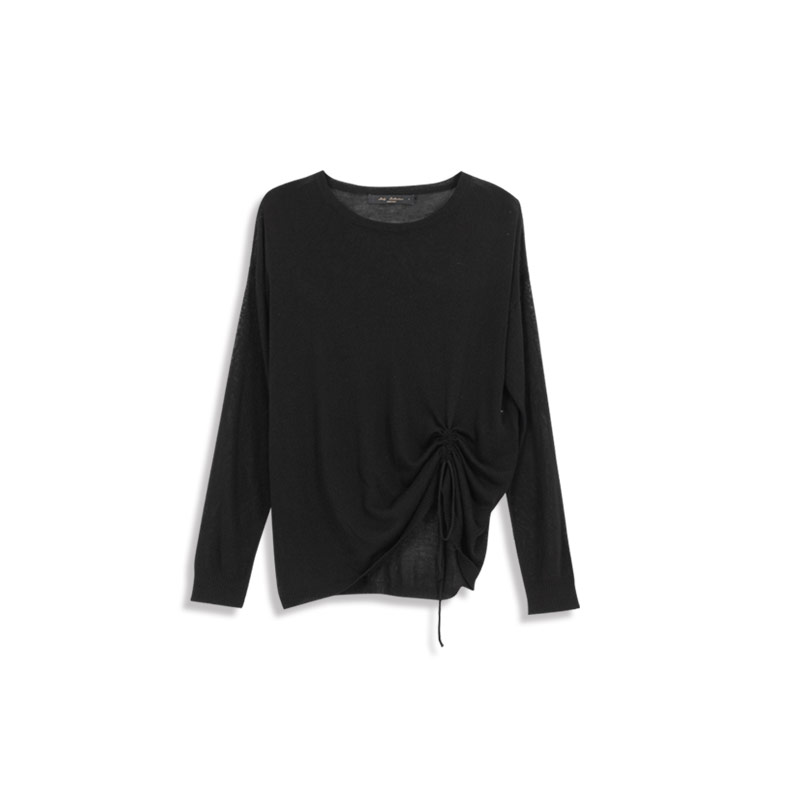 Solid color simple drawstring design knitted top three-color sale