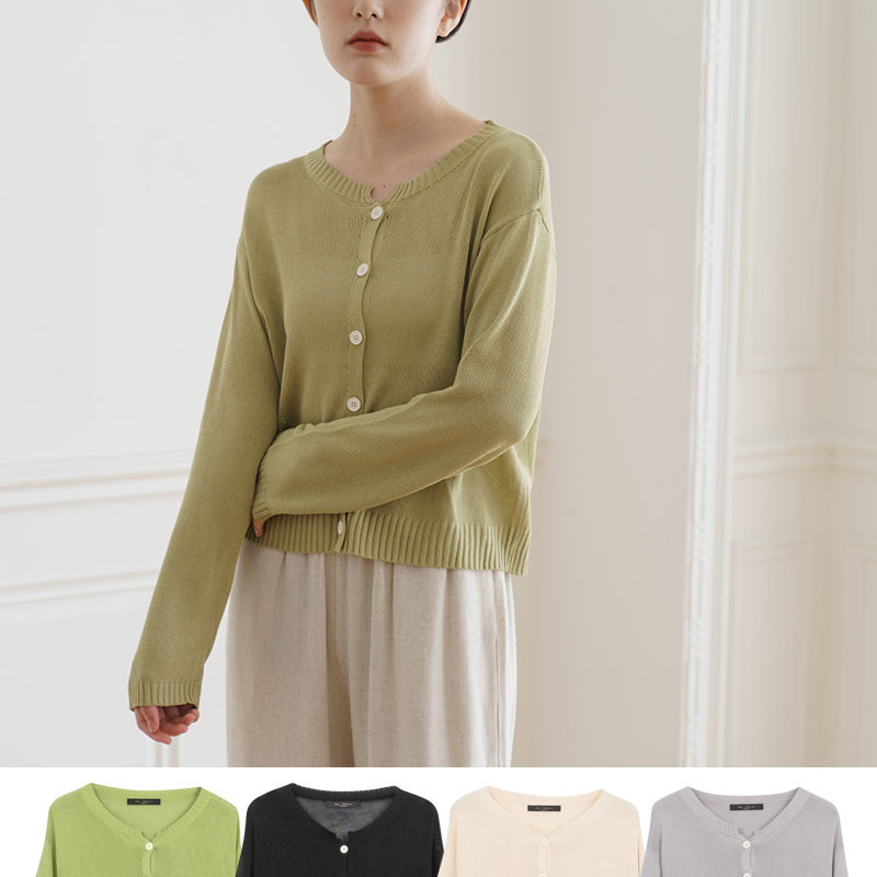 Plain-breasted round neck knitted jacket in four colors