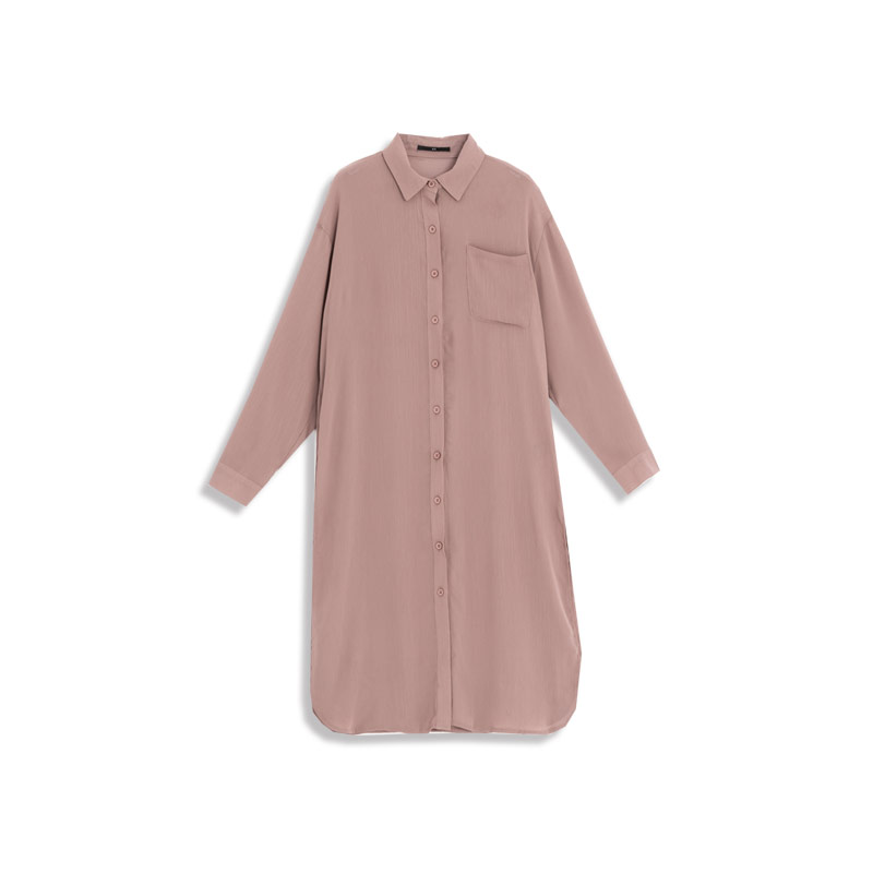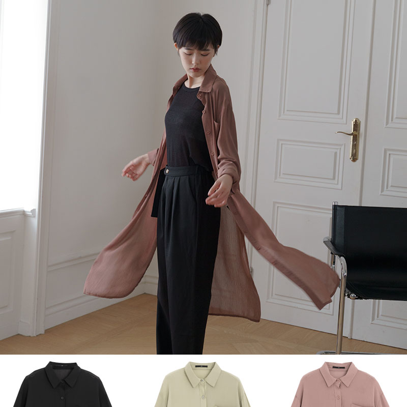 Single-pocket plain-textured long shirt in three colors