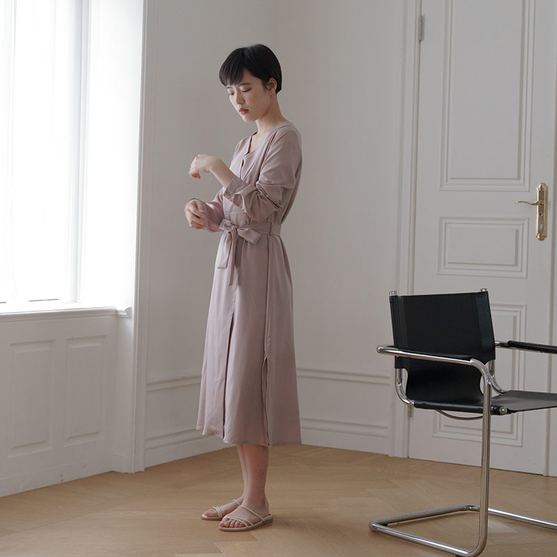 V-neck pleated dress in two colors