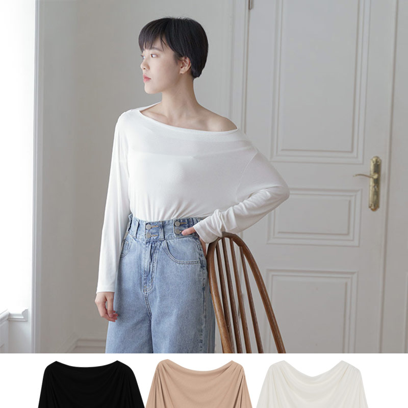 Simple plain color collar soft cotton top three-color sale