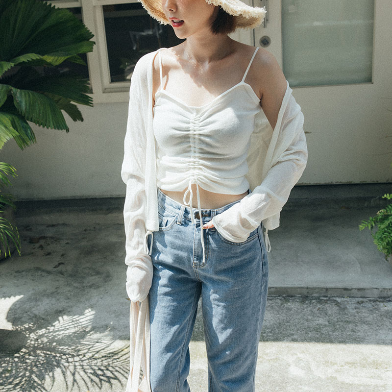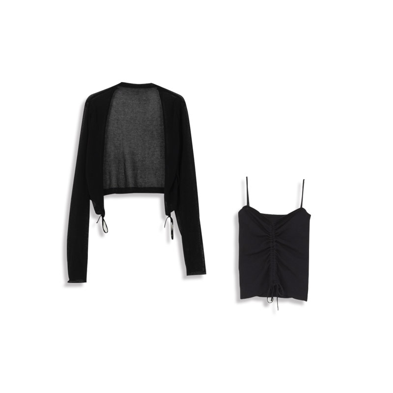 Drawstring crinkle vest knit coat two-piece top three-color sale