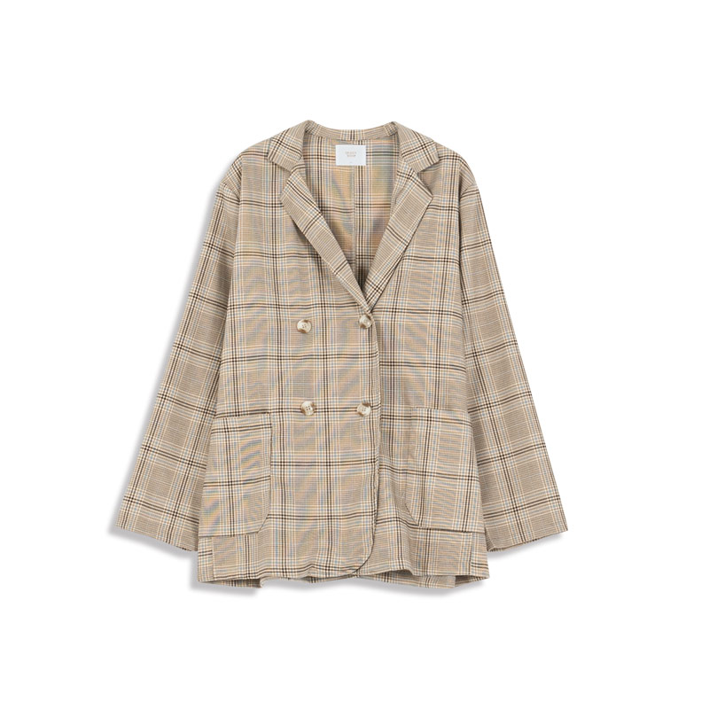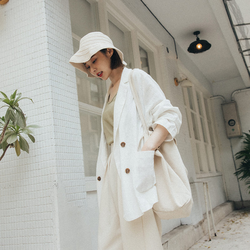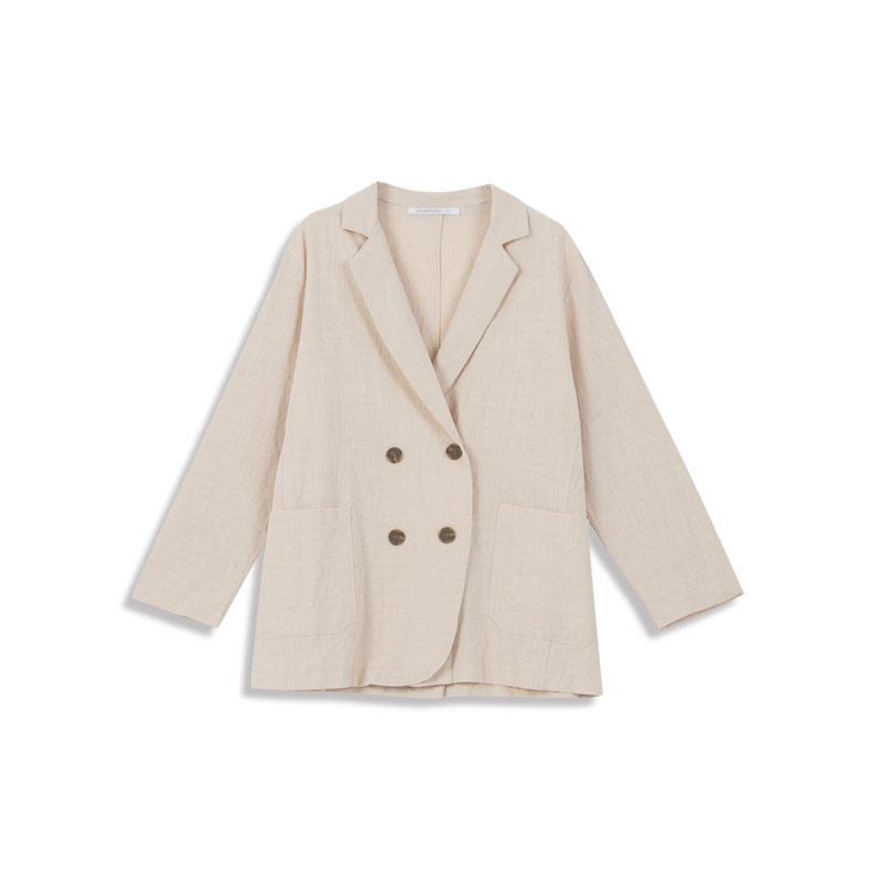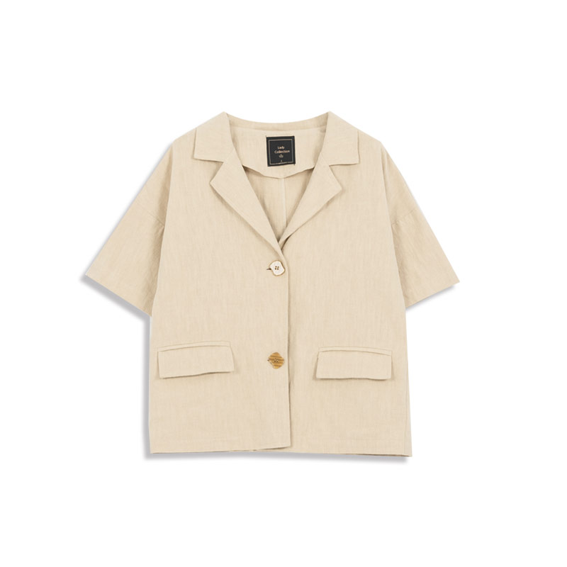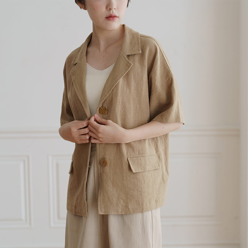 Double-pocket suit collar short-sleeved cotton and linen jacket