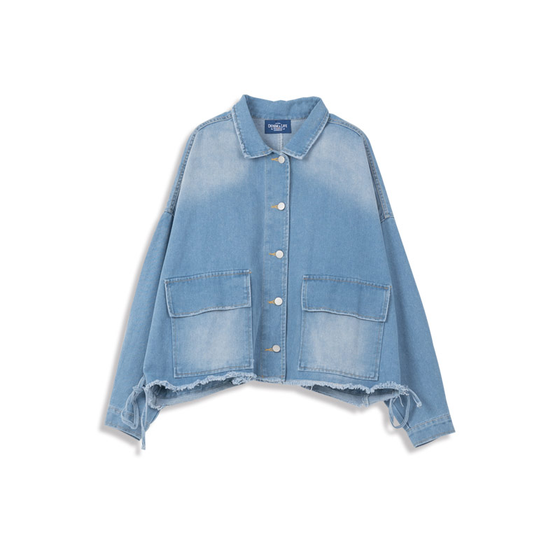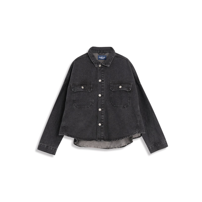 Short version stand collar double-pocket edging shirt jacket two colors for sale