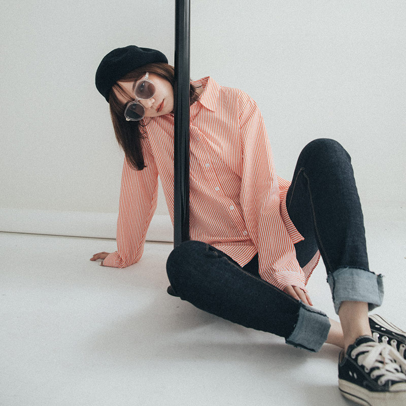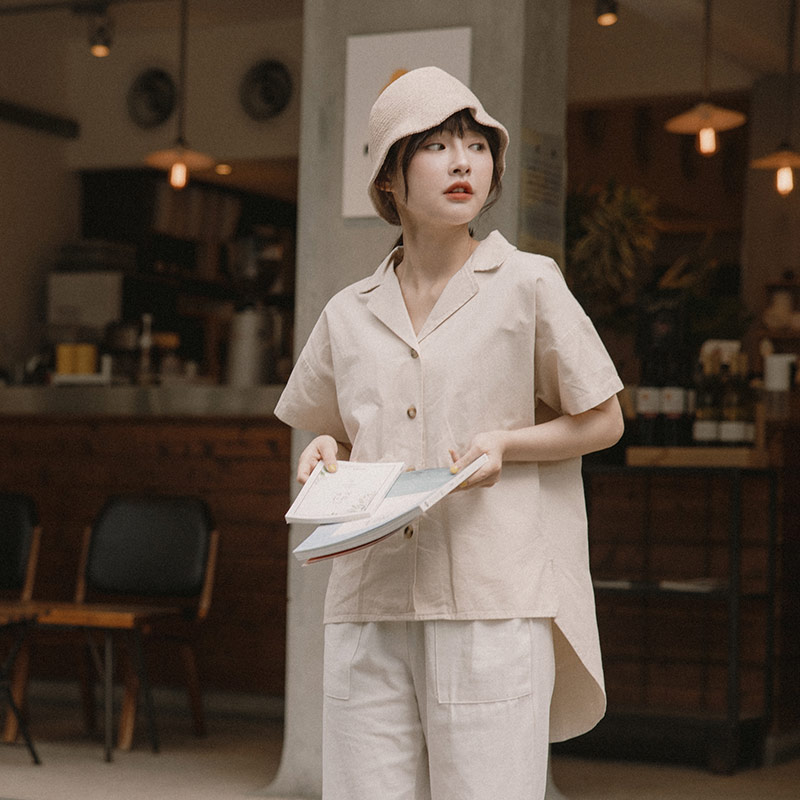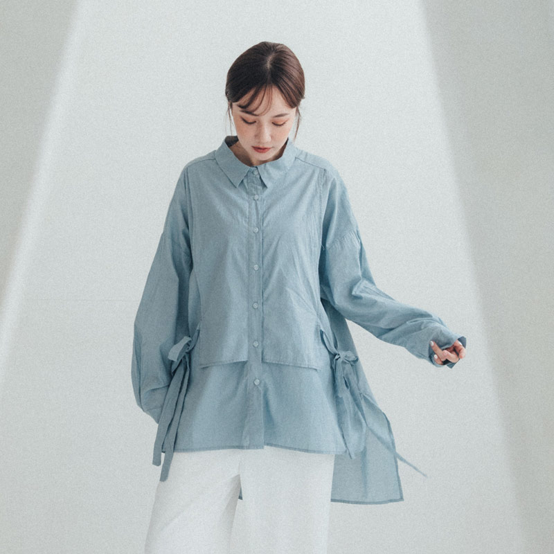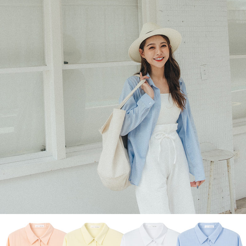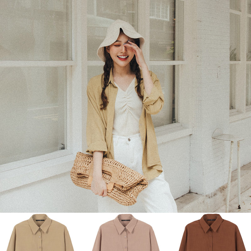 Back wrinkle shoulderless line design texture shirt three-color sale