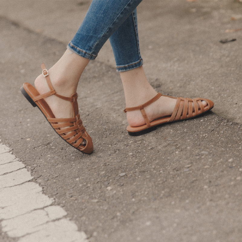 Leather strap flat sandals Three-color sale 35-39