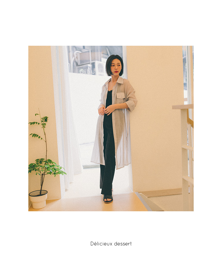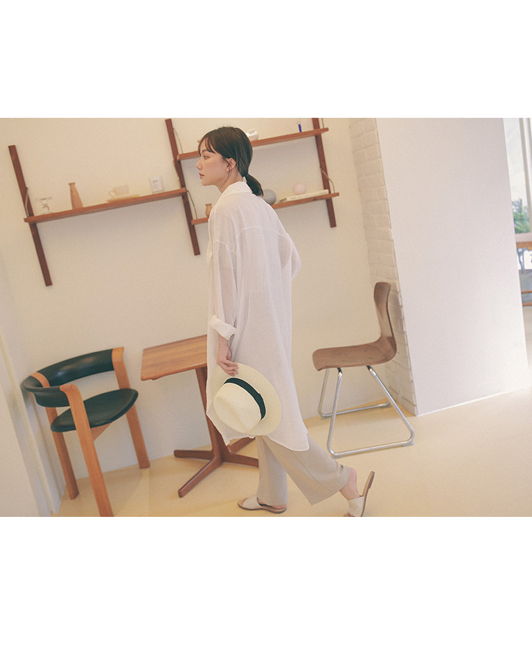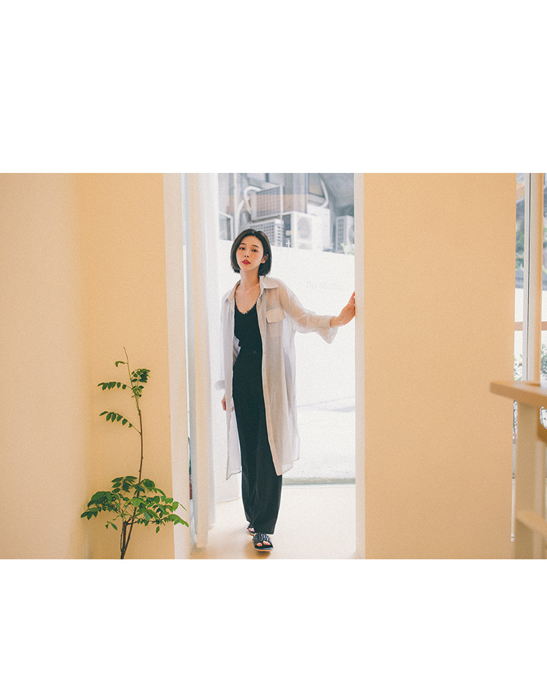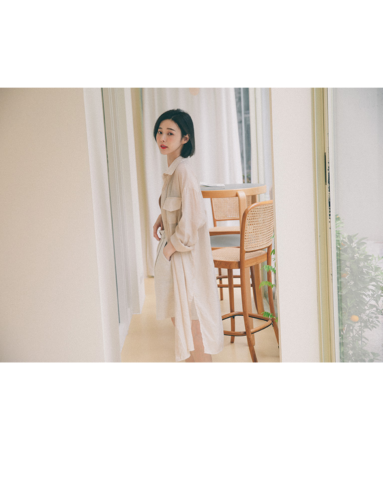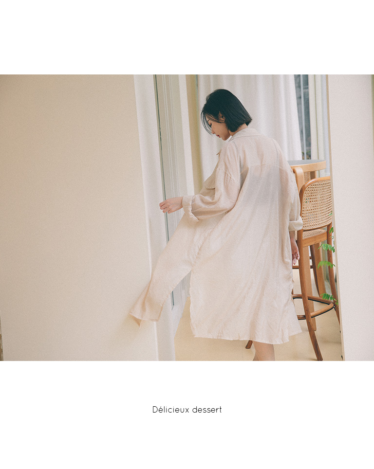 單口袋造型微透長版襯衫