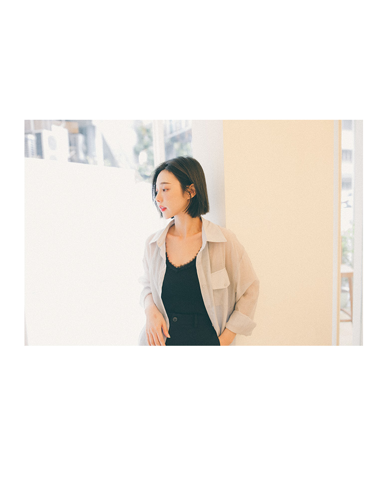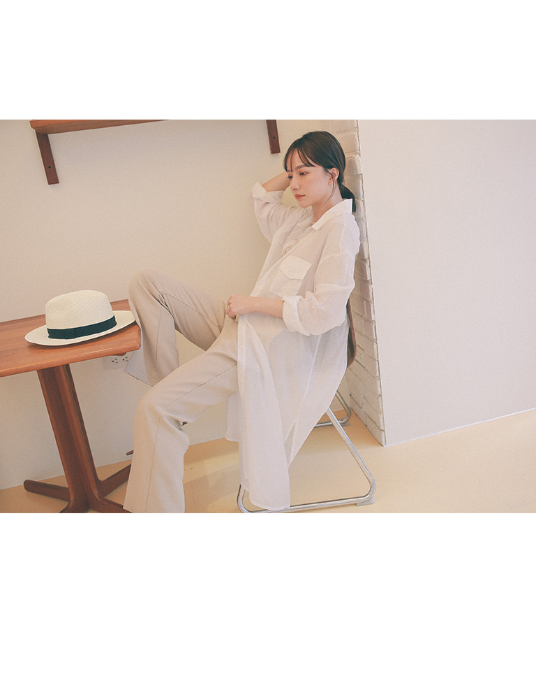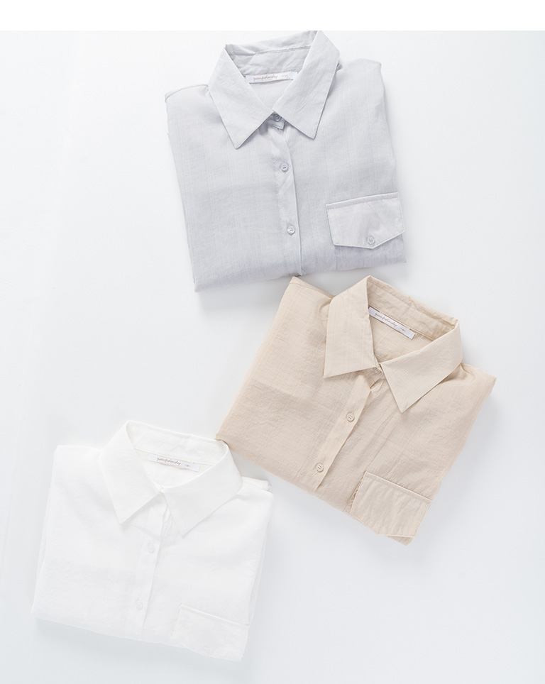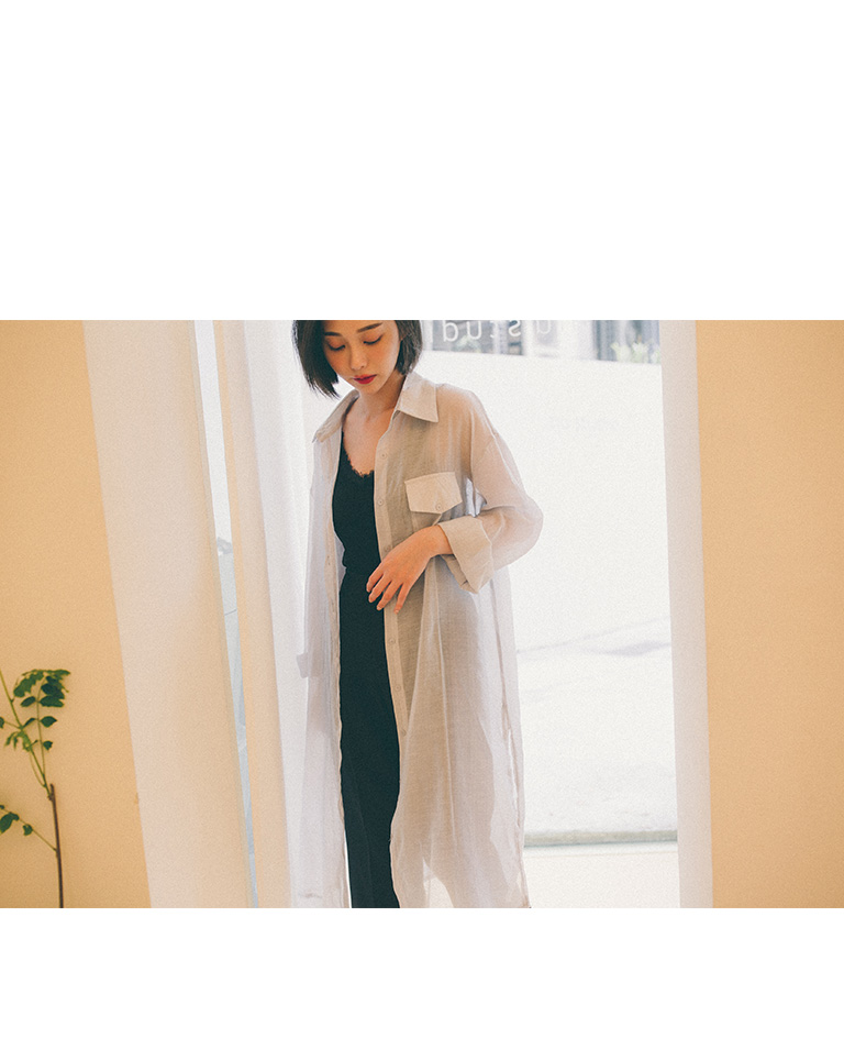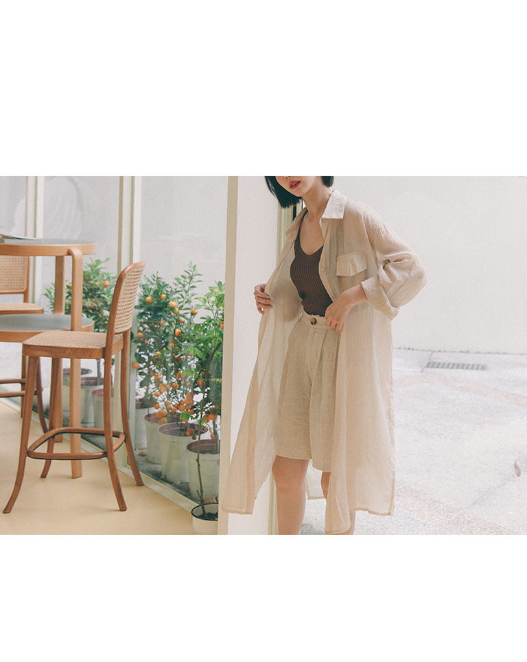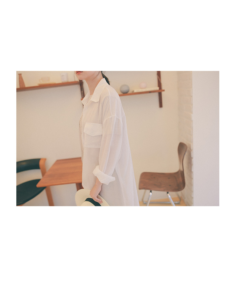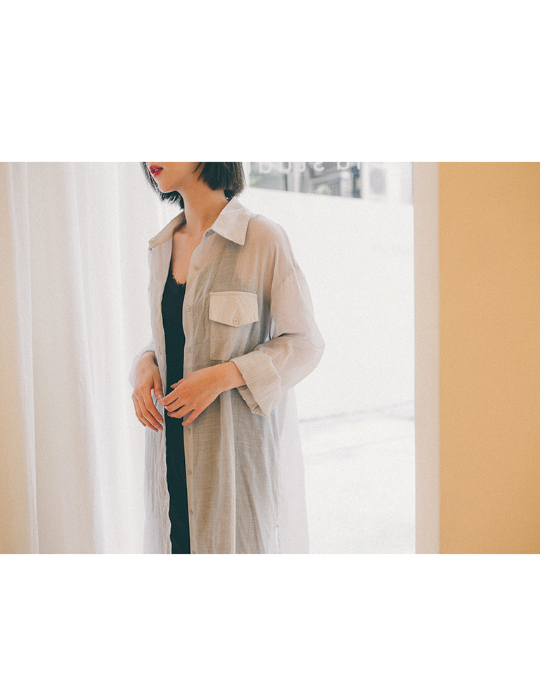 單口袋造型微透長版襯衫 三色售