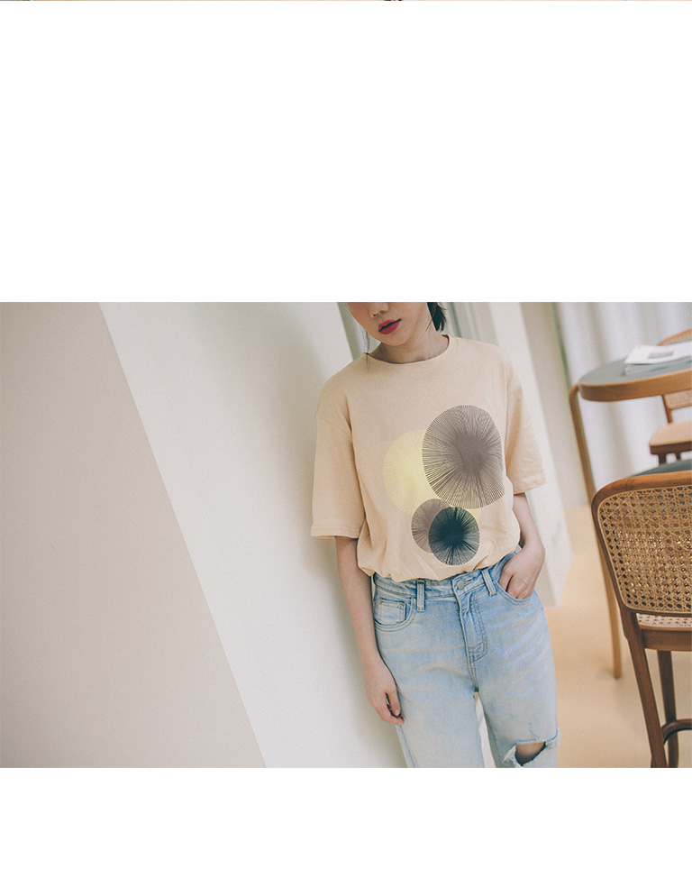 線條圓圈組合印圖TEE