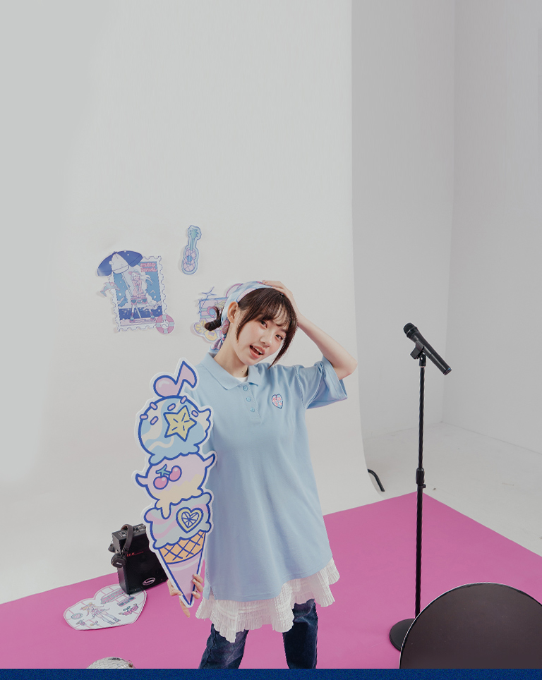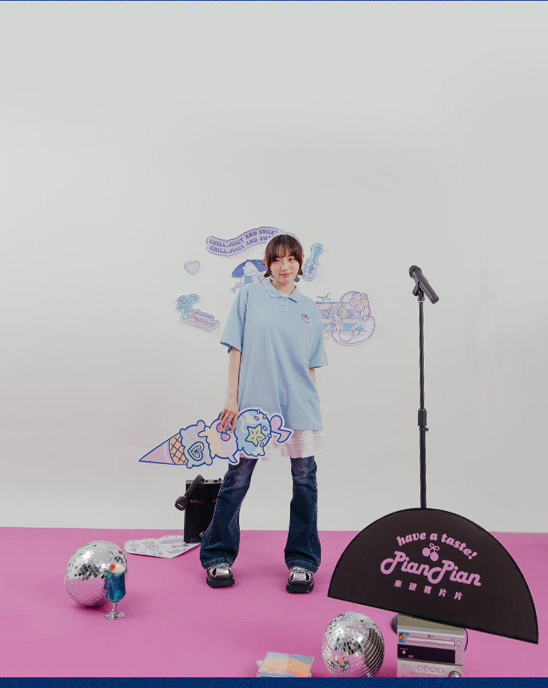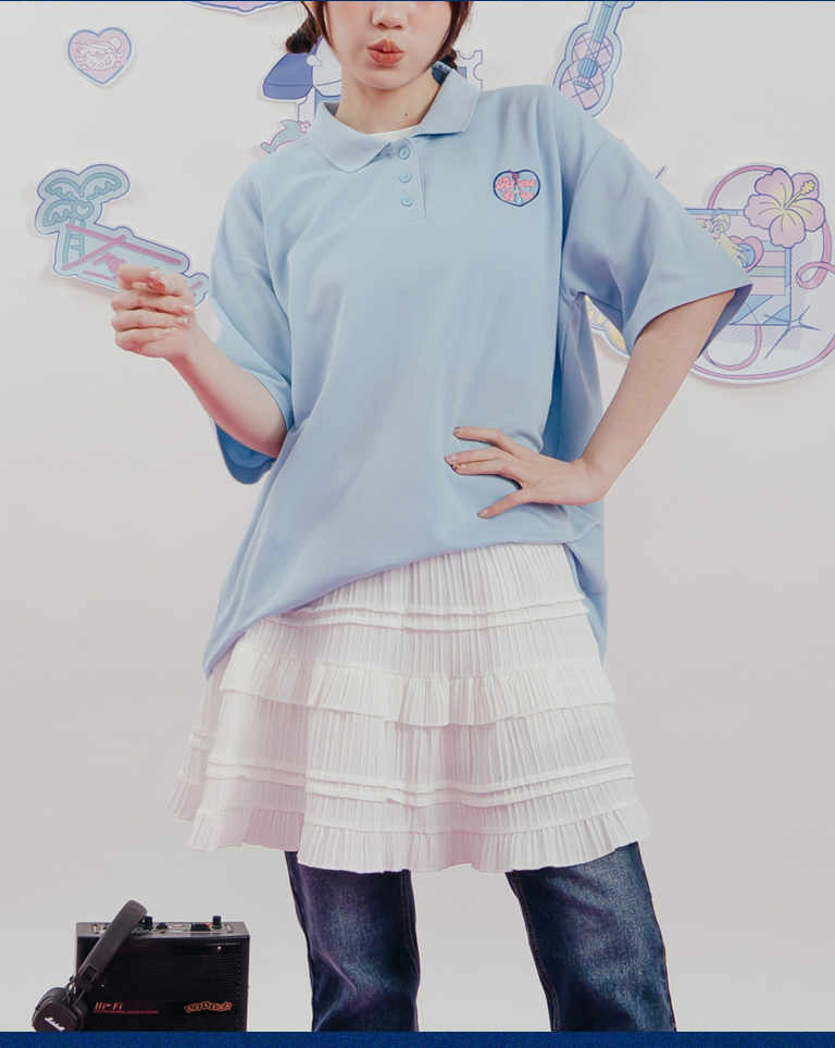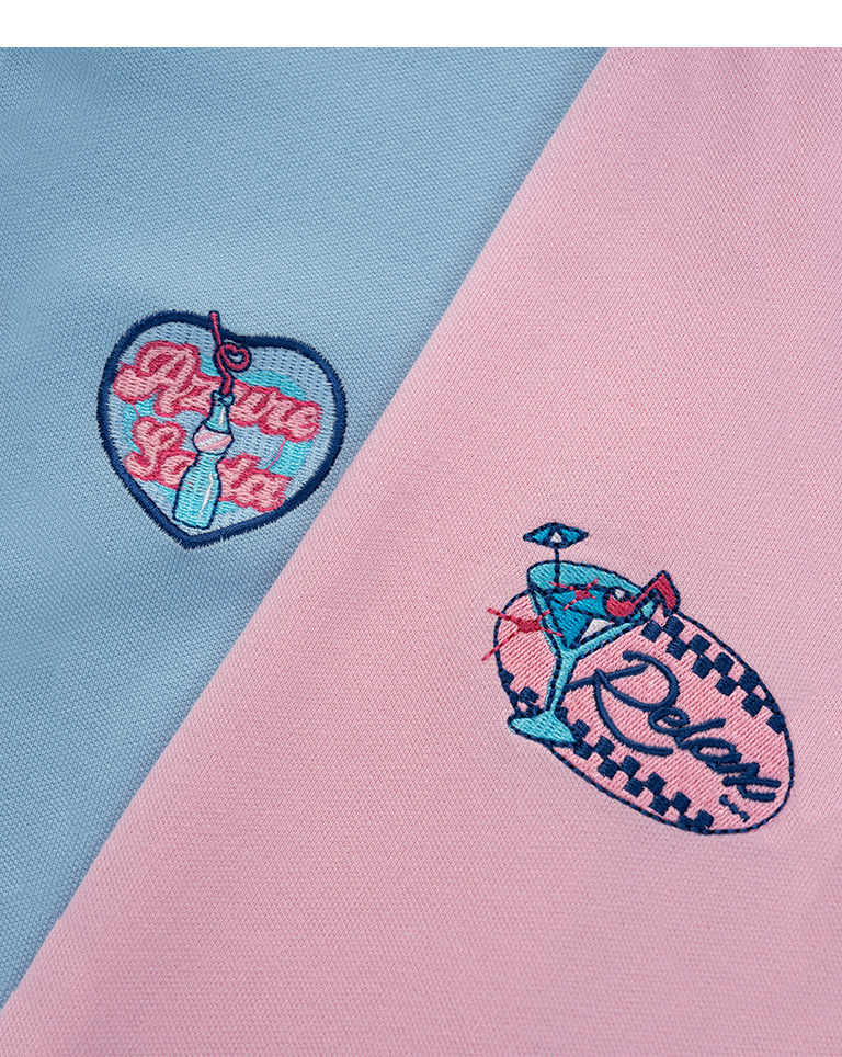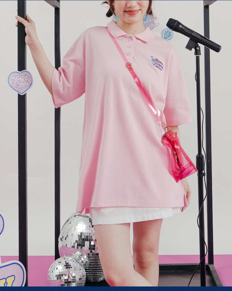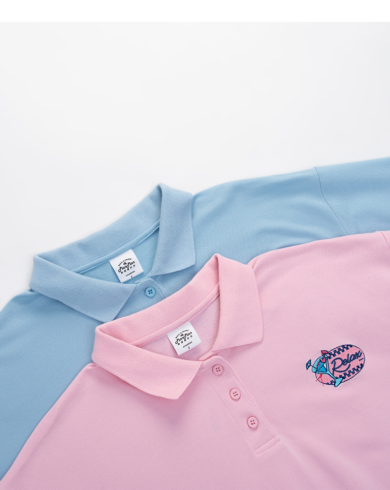 MIT 寬片片 復古小圖刺繡POLO領上衣 兩色售