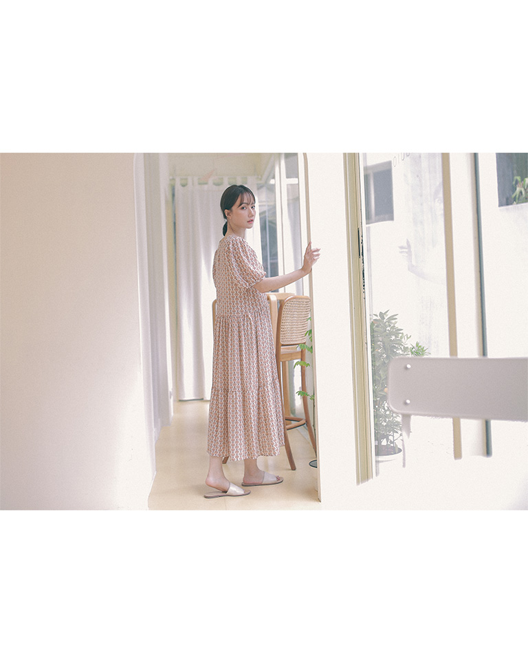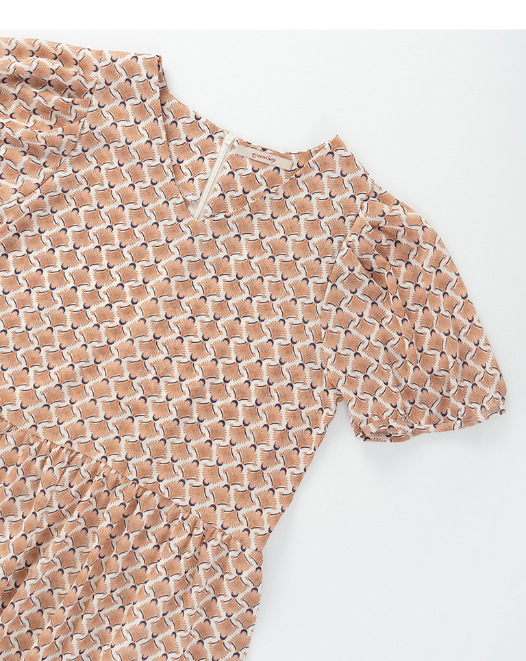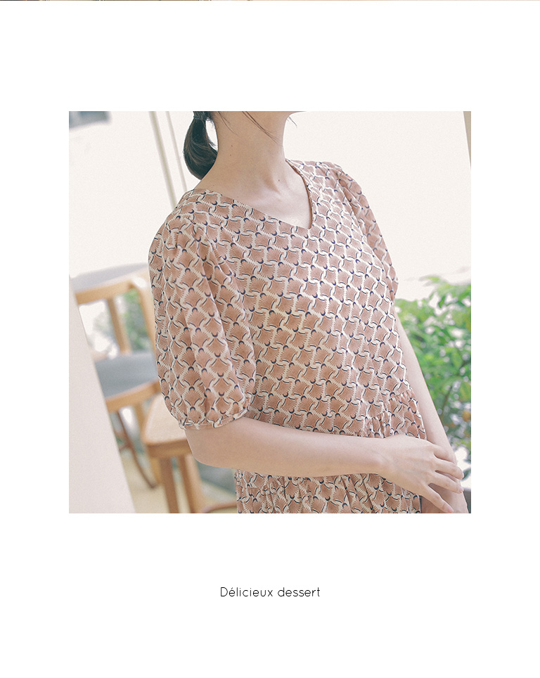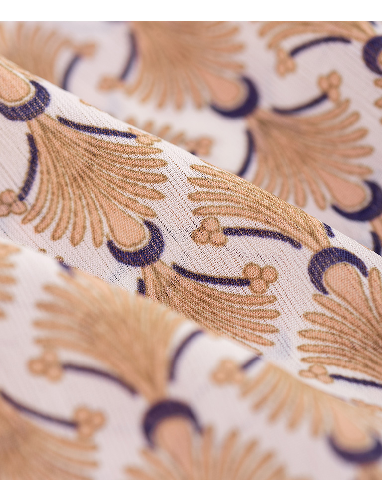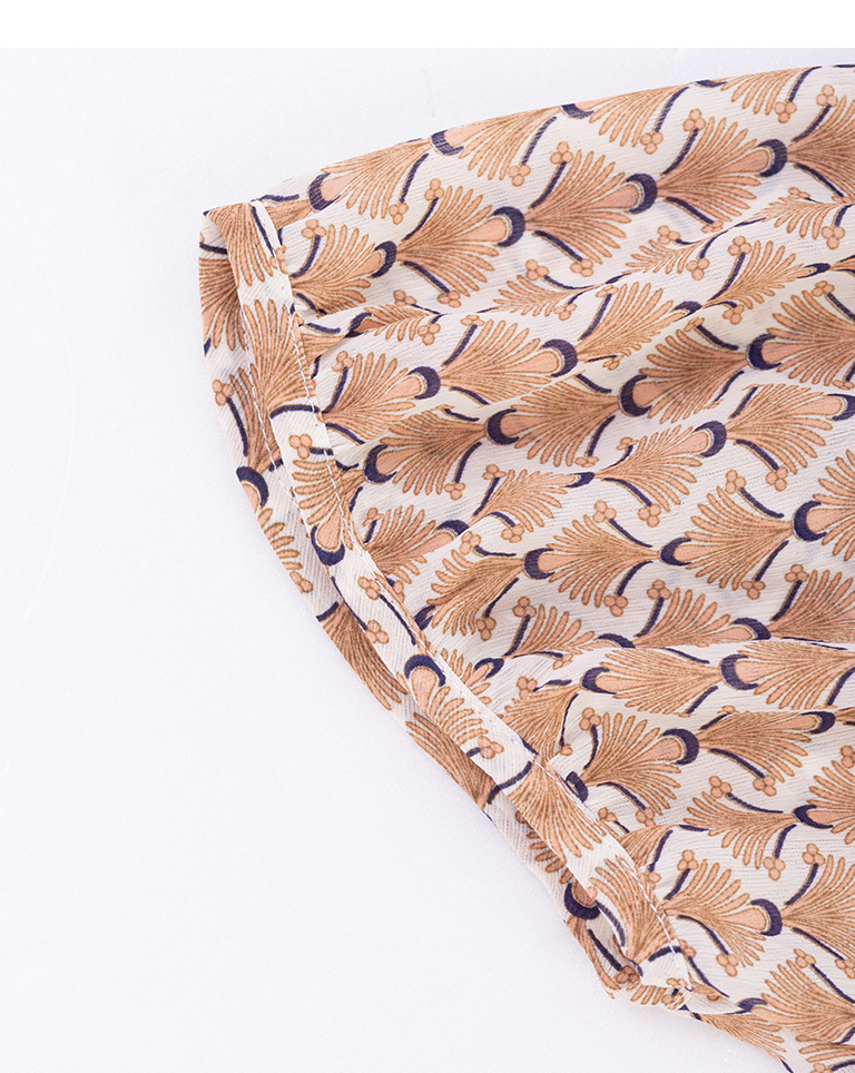 復古印花設計V領雪紡洋裝