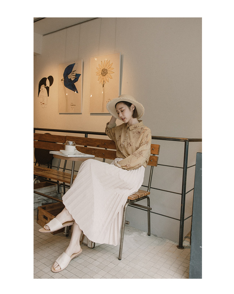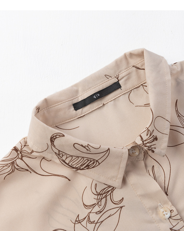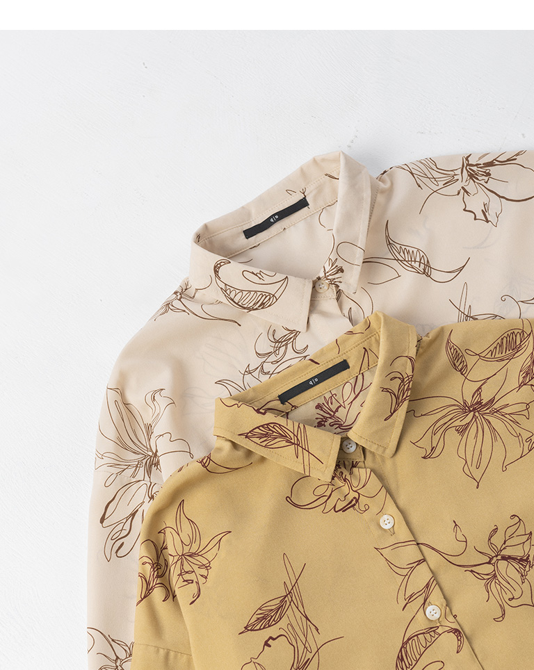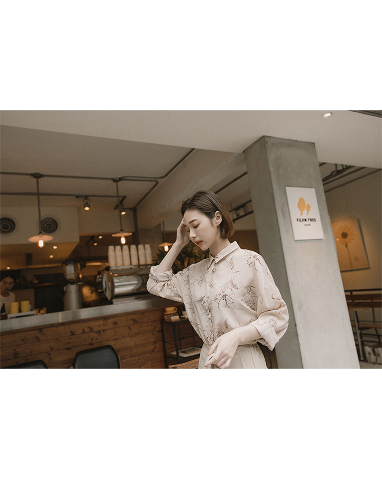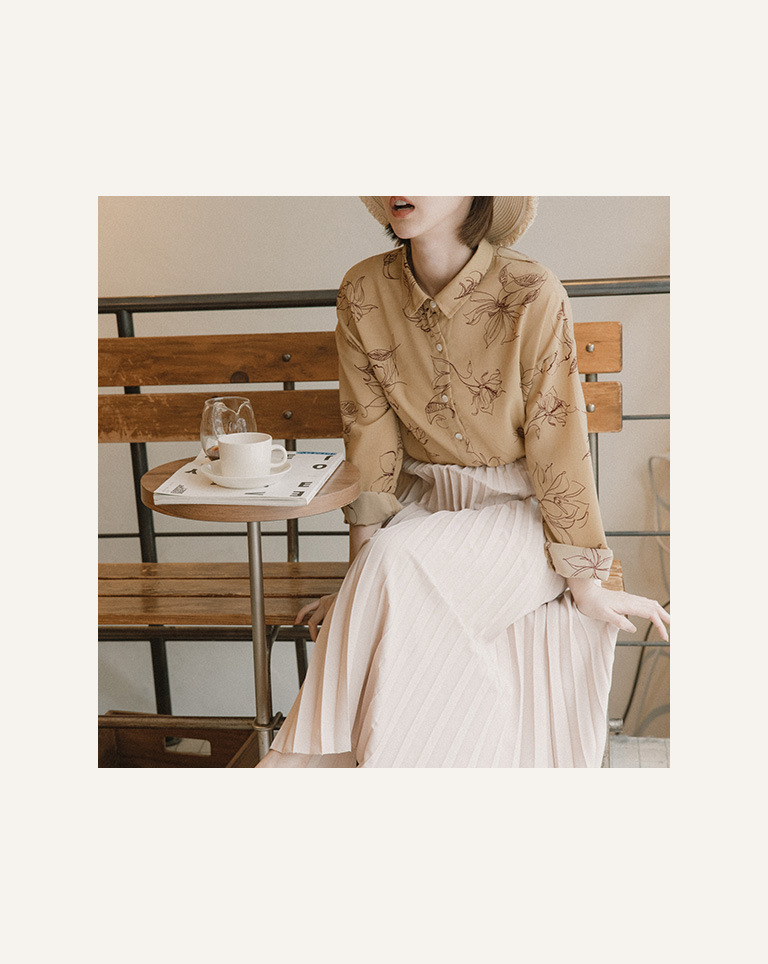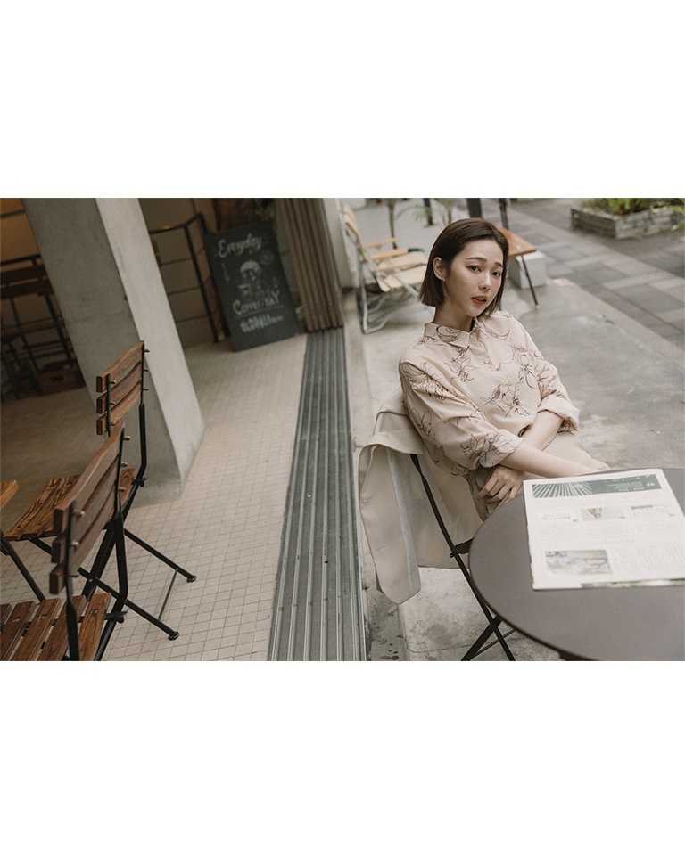 手繪線條花朵雪紡長袖襯衫 兩色售