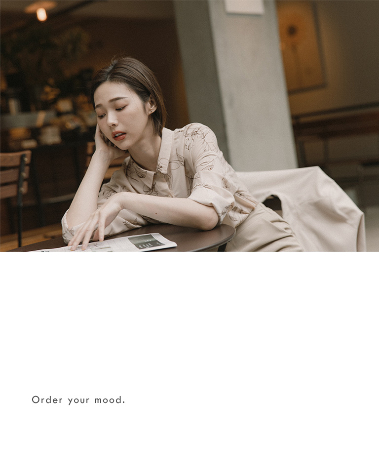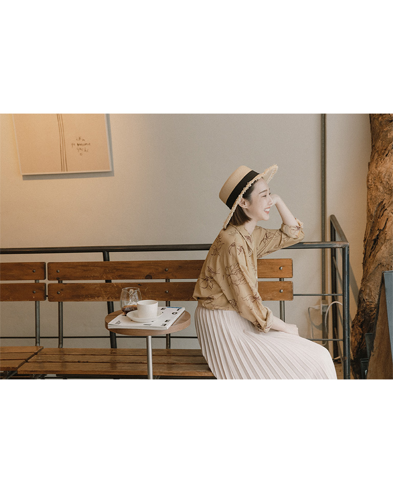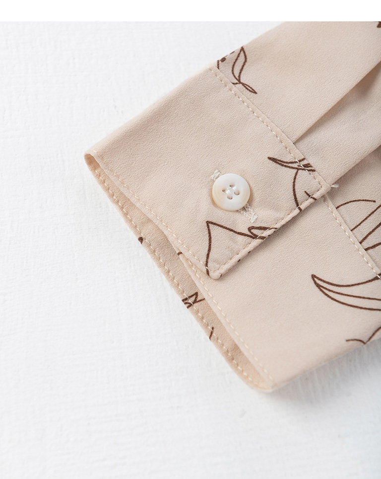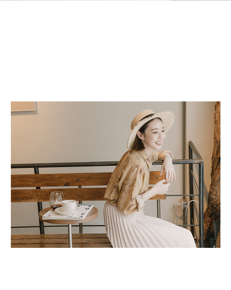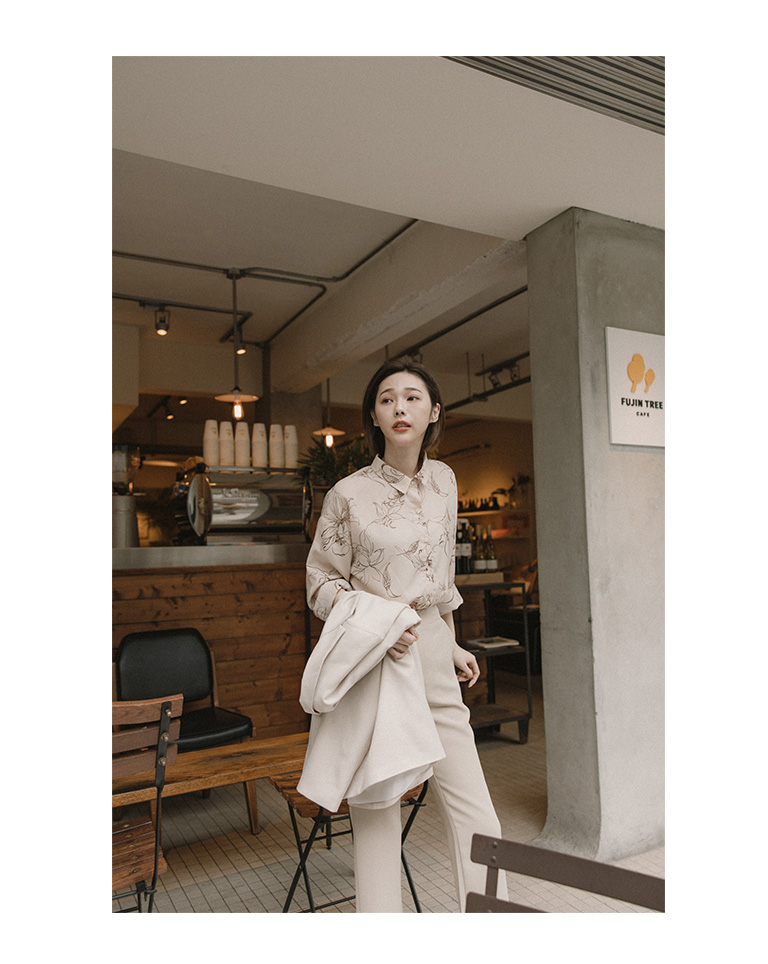 手繪線條花朵雪紡長袖襯衫 兩色售