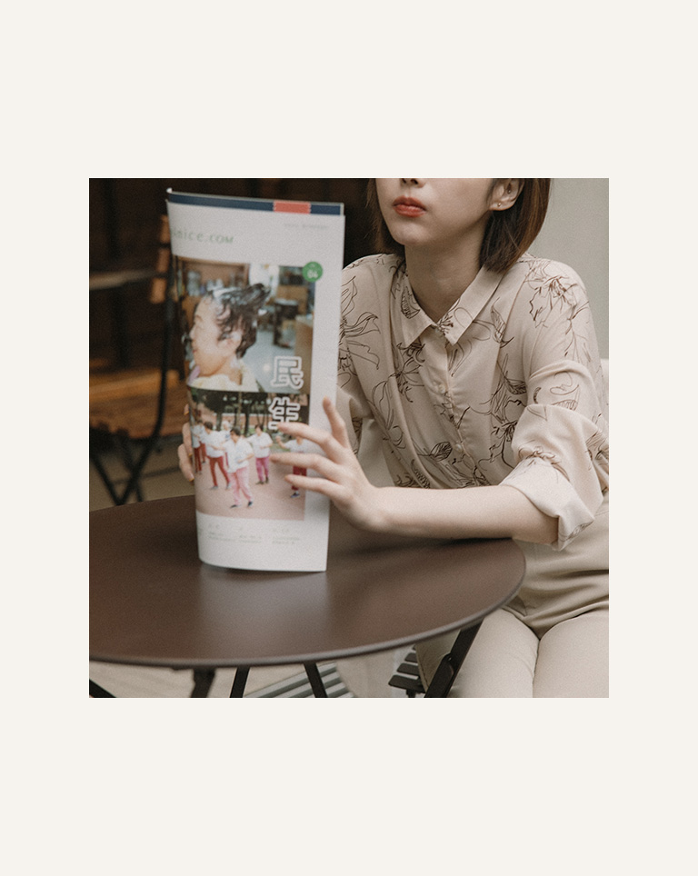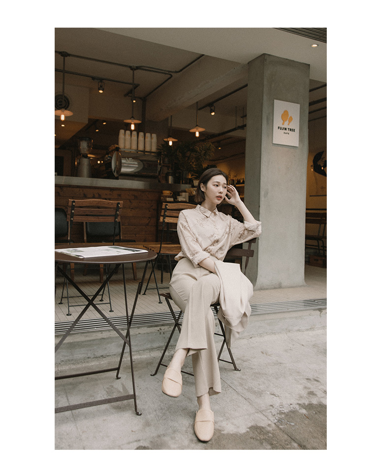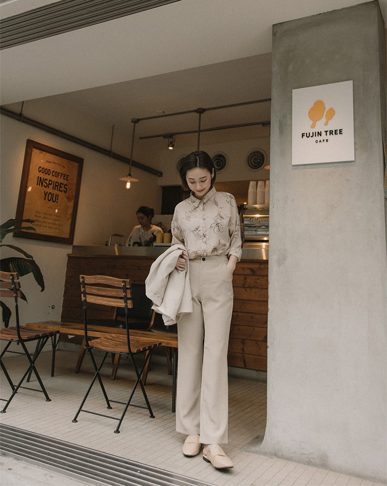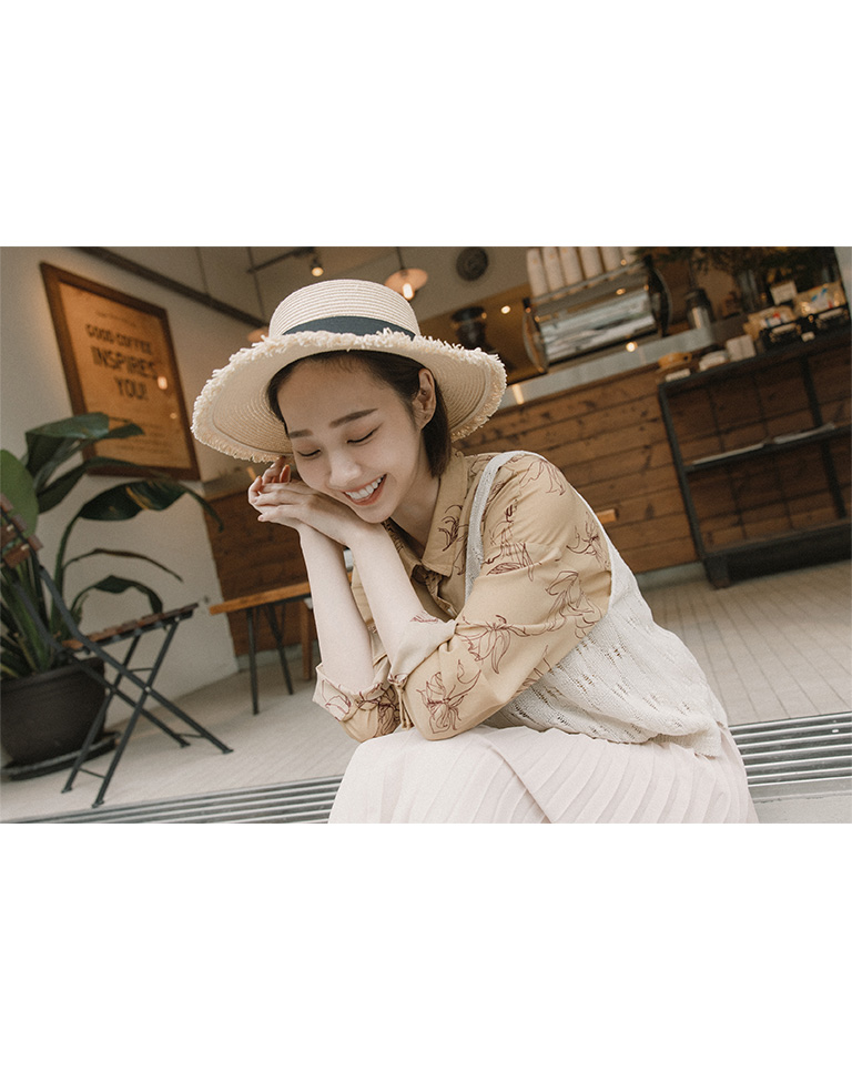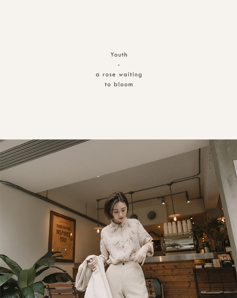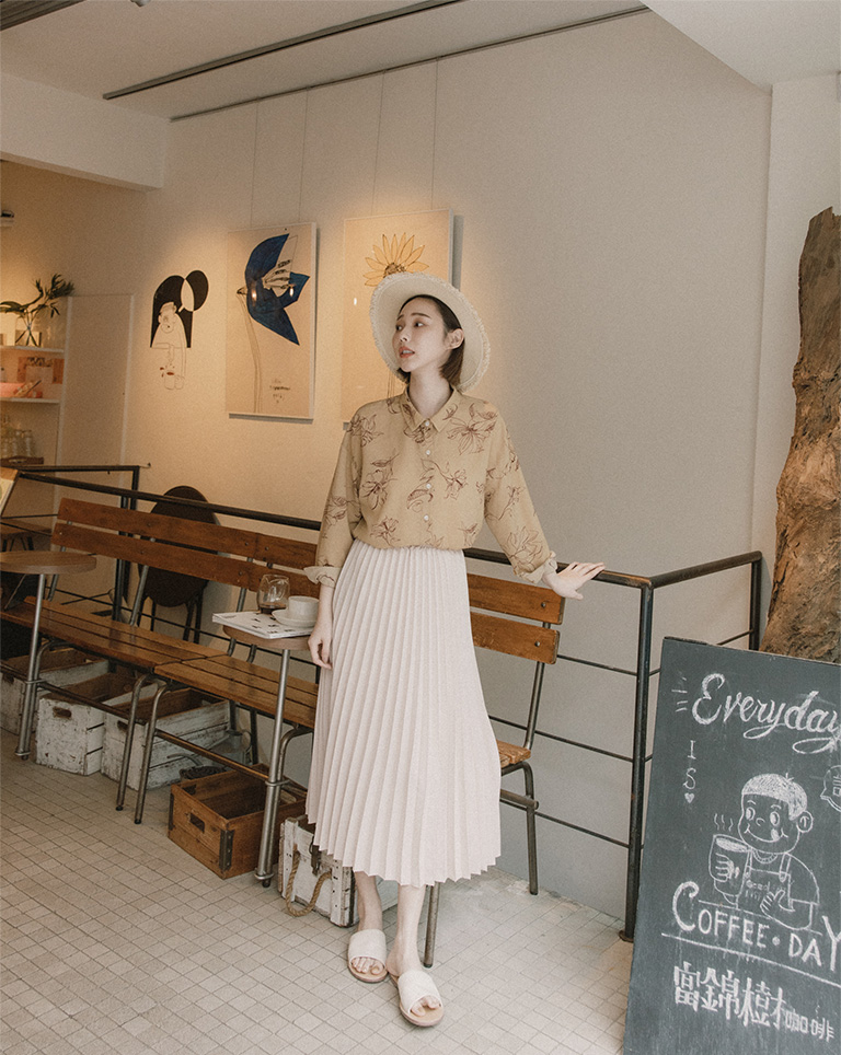 手繪線條花朵雪紡長袖襯衫 兩色售