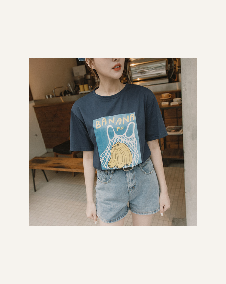 夏日活潑香蕉印圖短袖TEE 兩色售