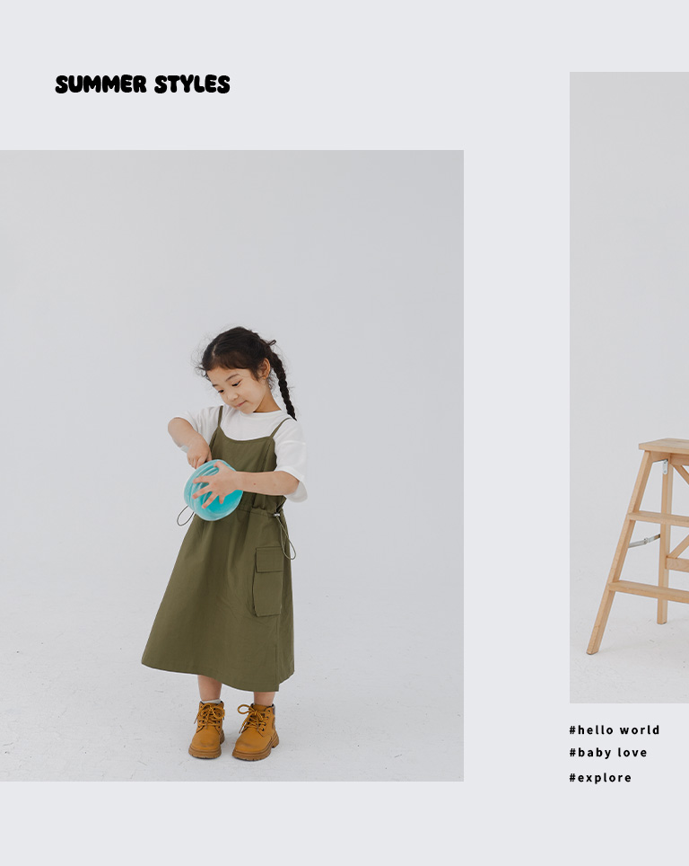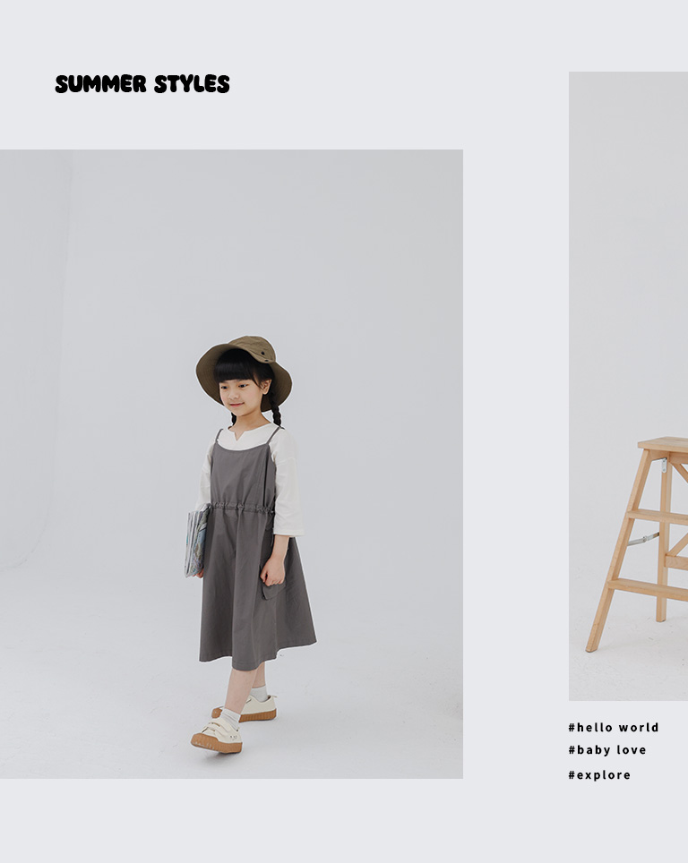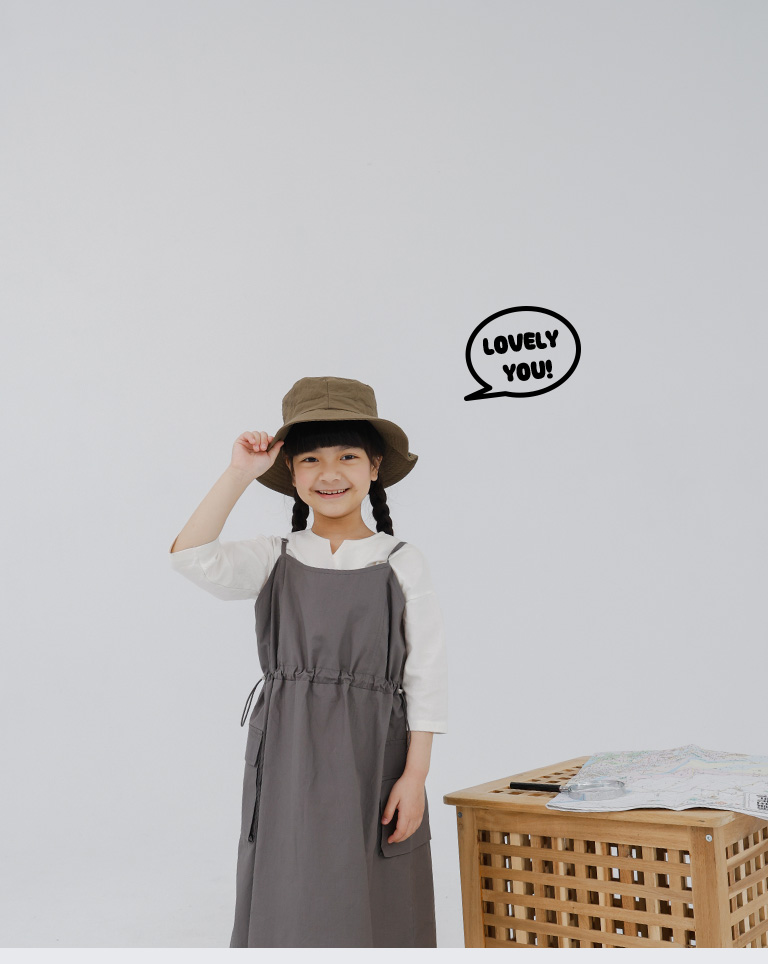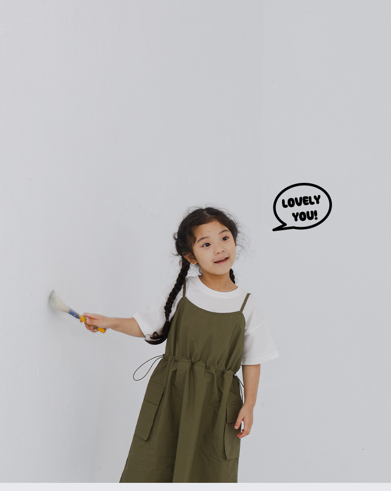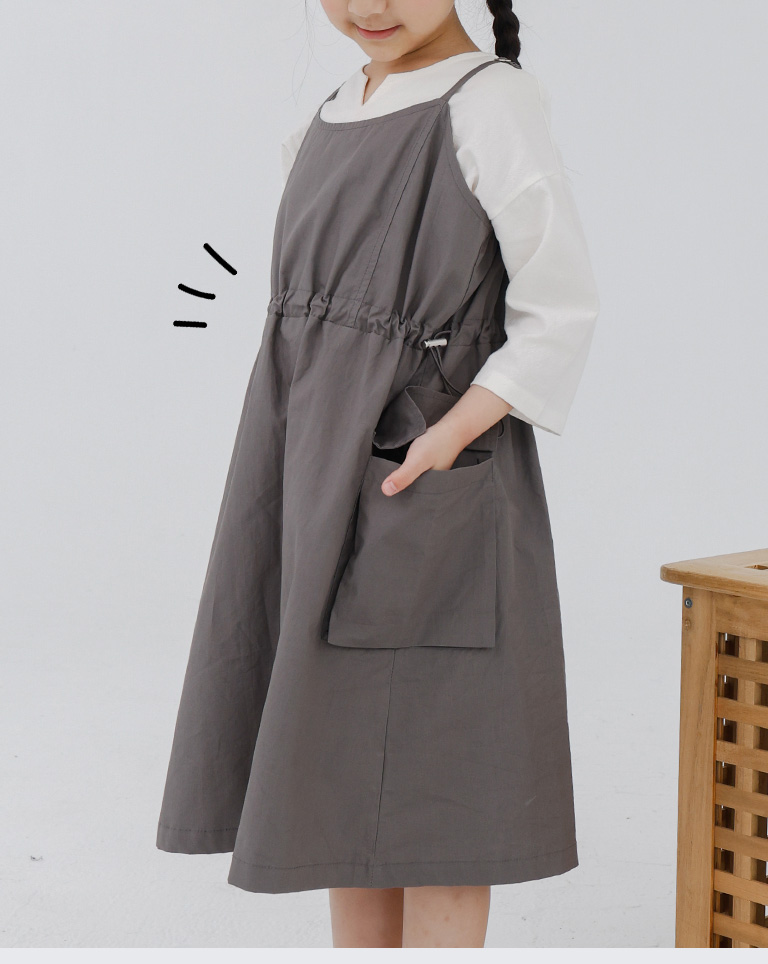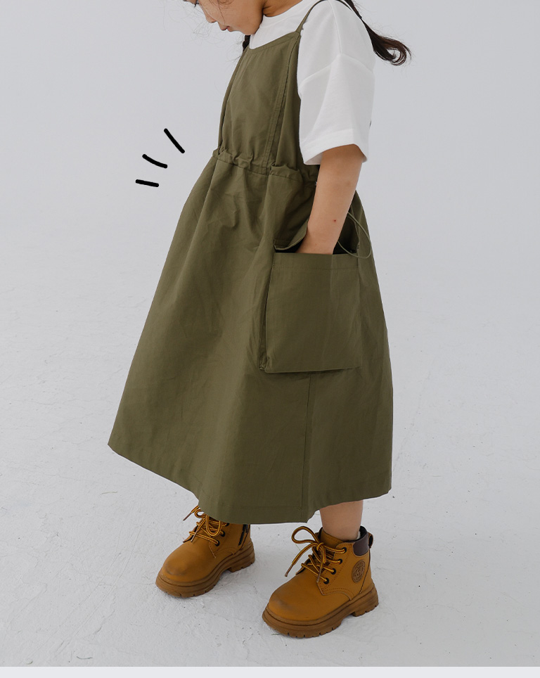 童裝 腰抽繩細肩工裝洋裝