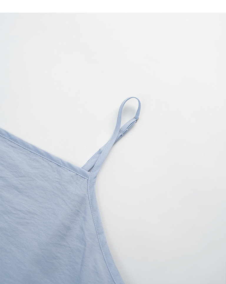 細肩帶設計展現鎖骨與肩頸線條