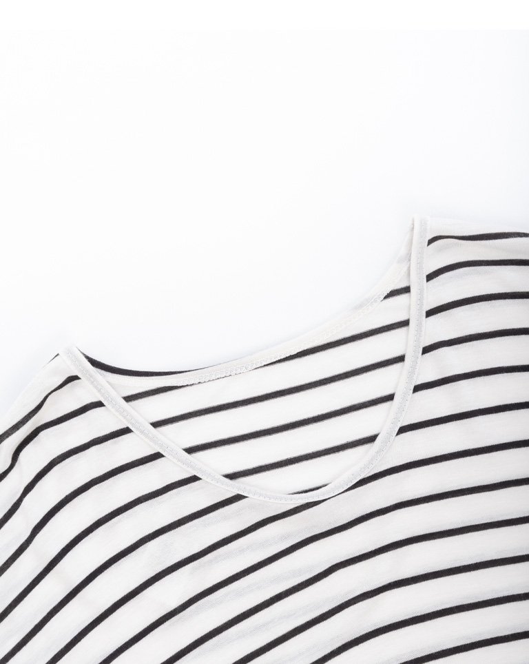 雙U領條紋落肩寬鬆上衣