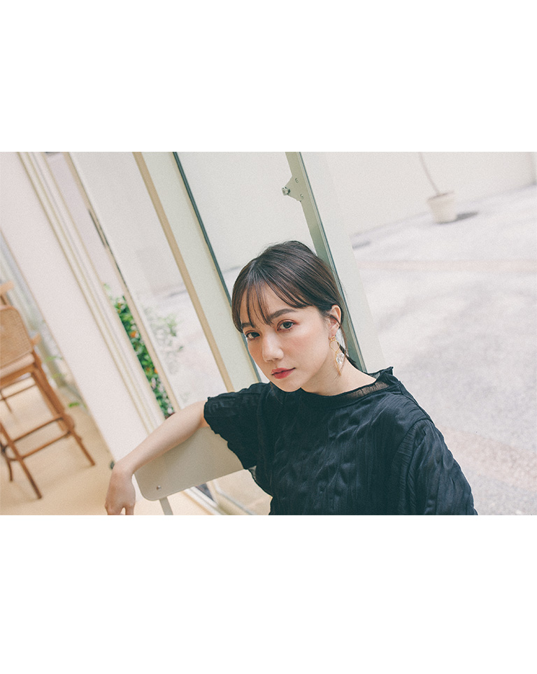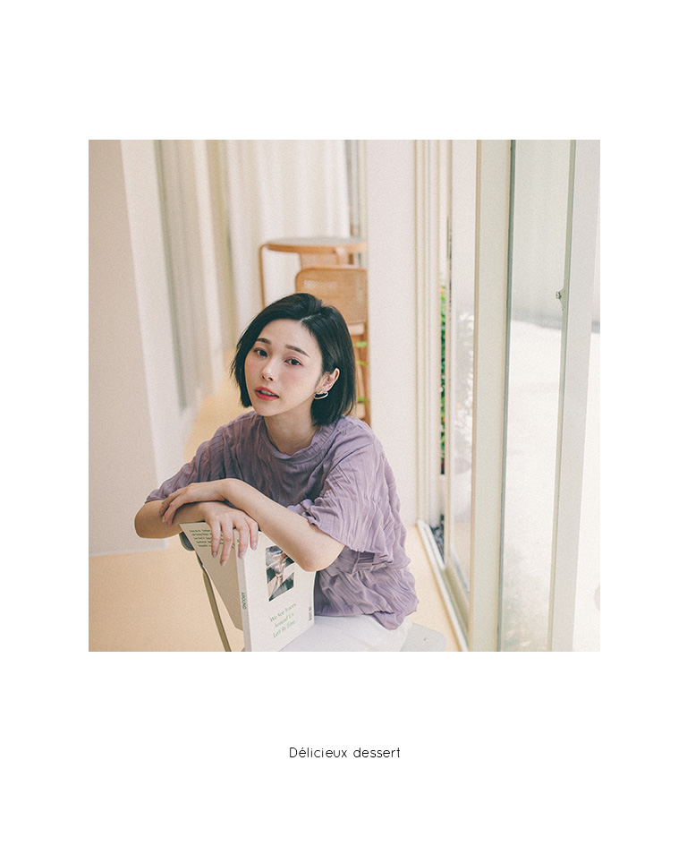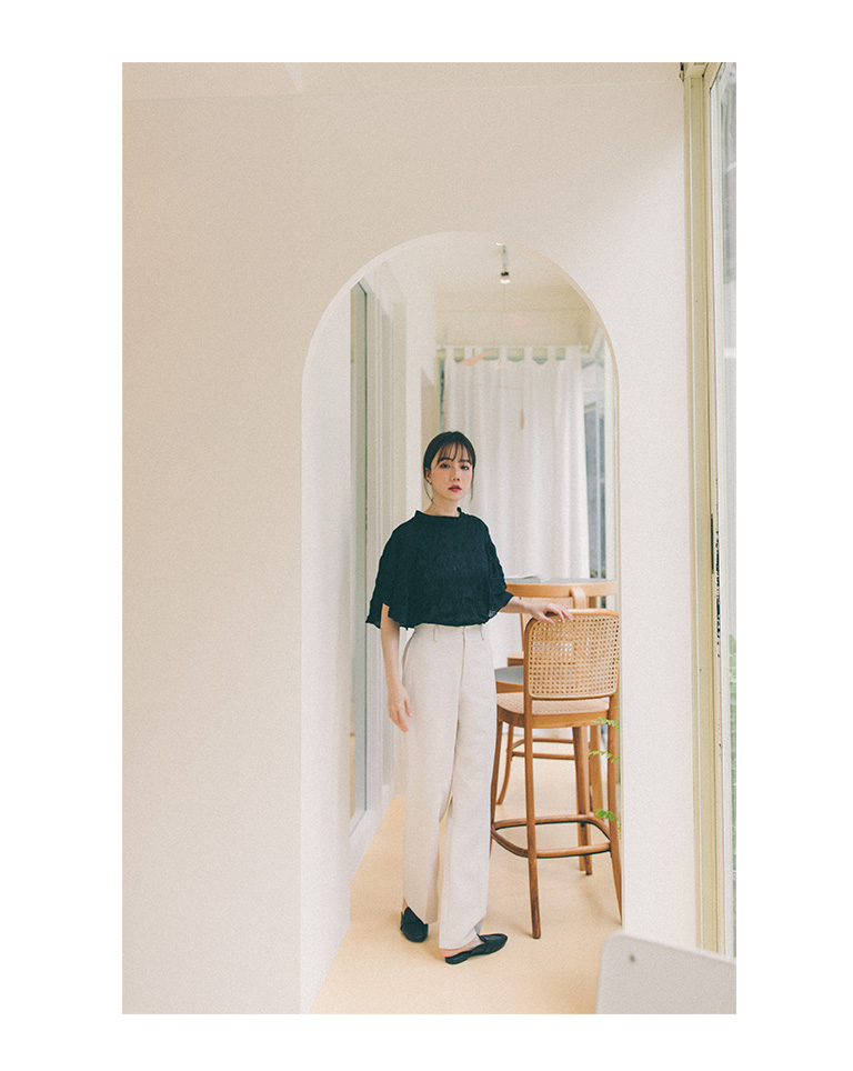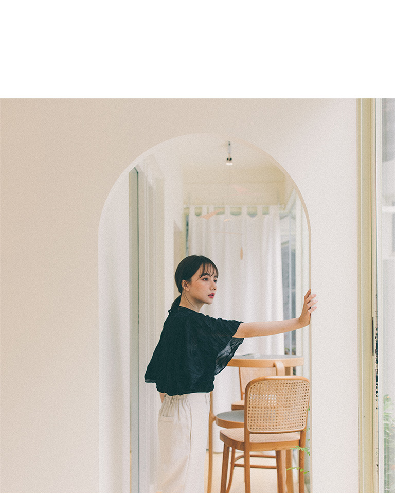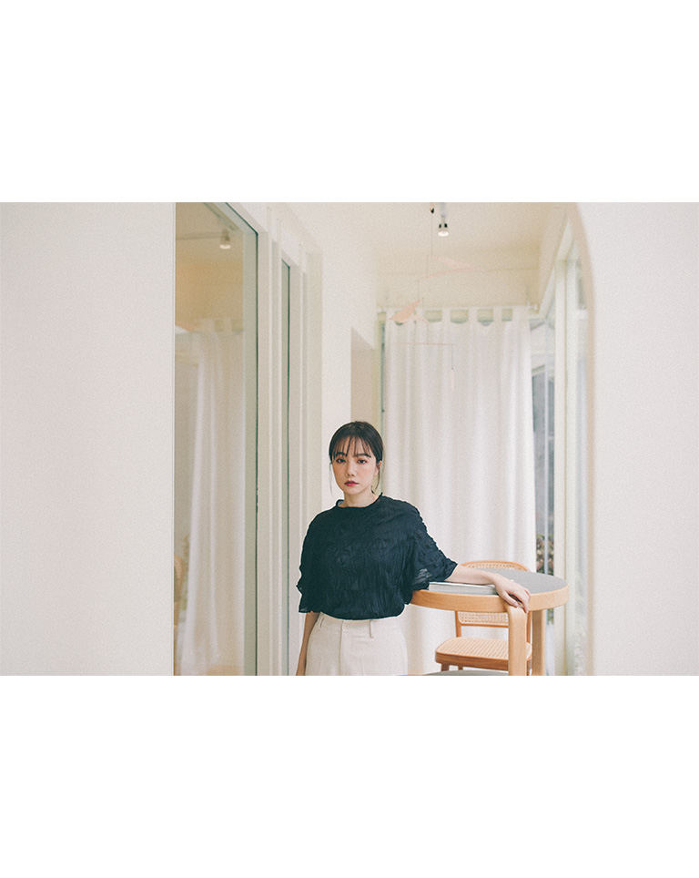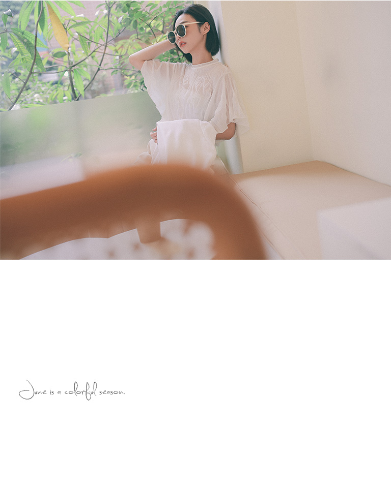 純色皺皺造型寬袖微透上衣