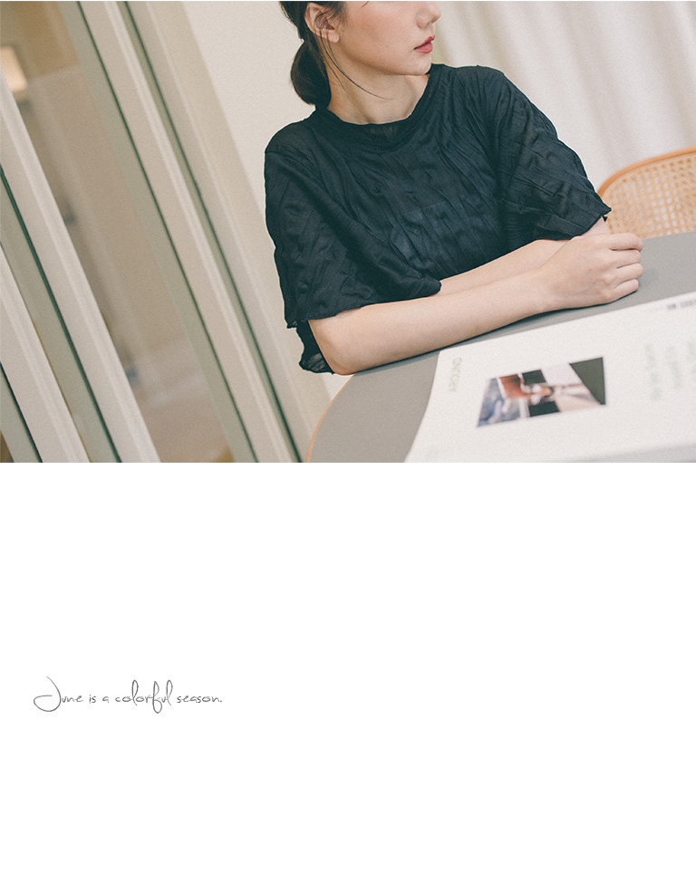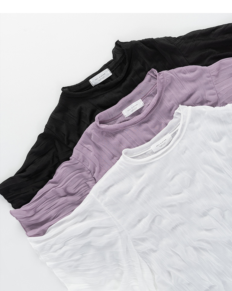 純色皺皺造型寬袖微透上衣 三色售
