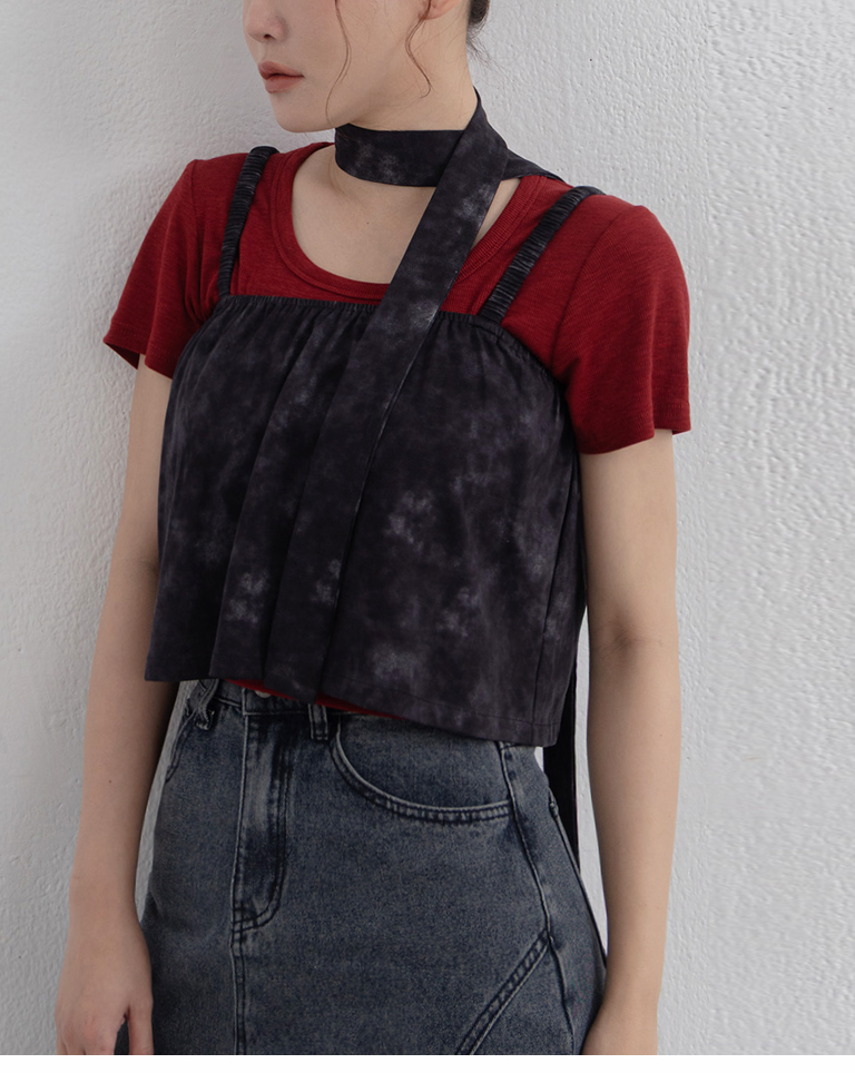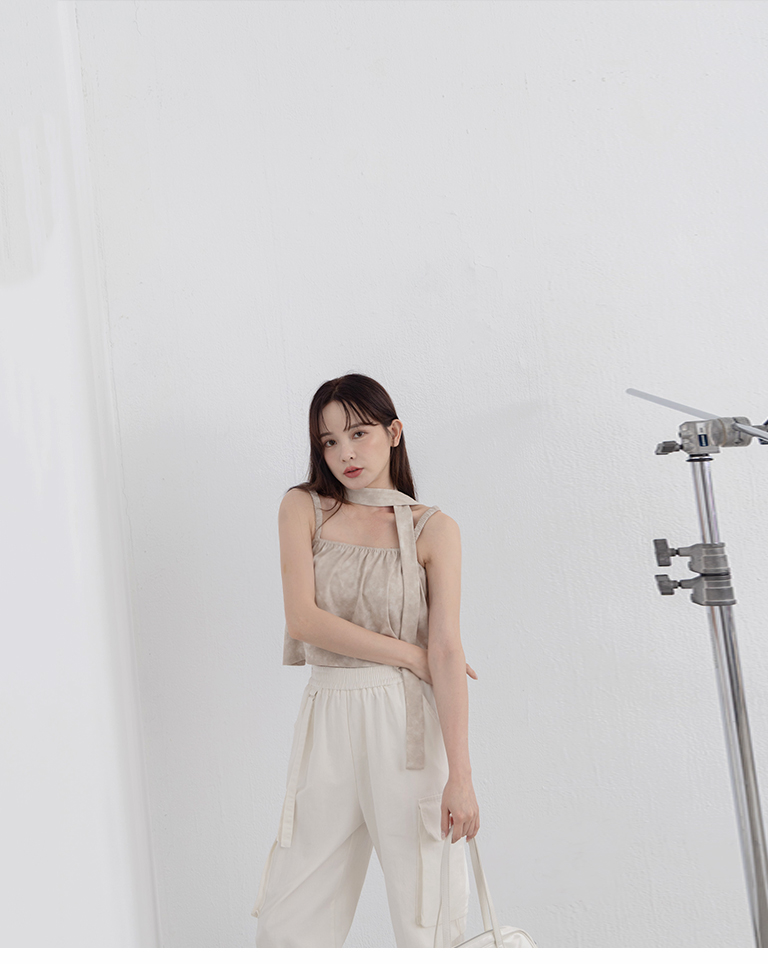 附綁帶渲染造型細肩短版背心