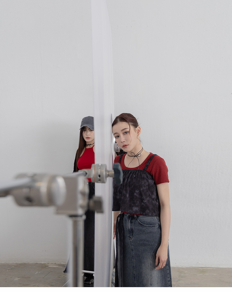 附綁帶渲染造型細肩短版背心 兩色售