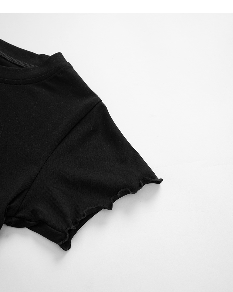 寬片片 櫻桃英文刺繡木耳邊短版上衣 兩色售