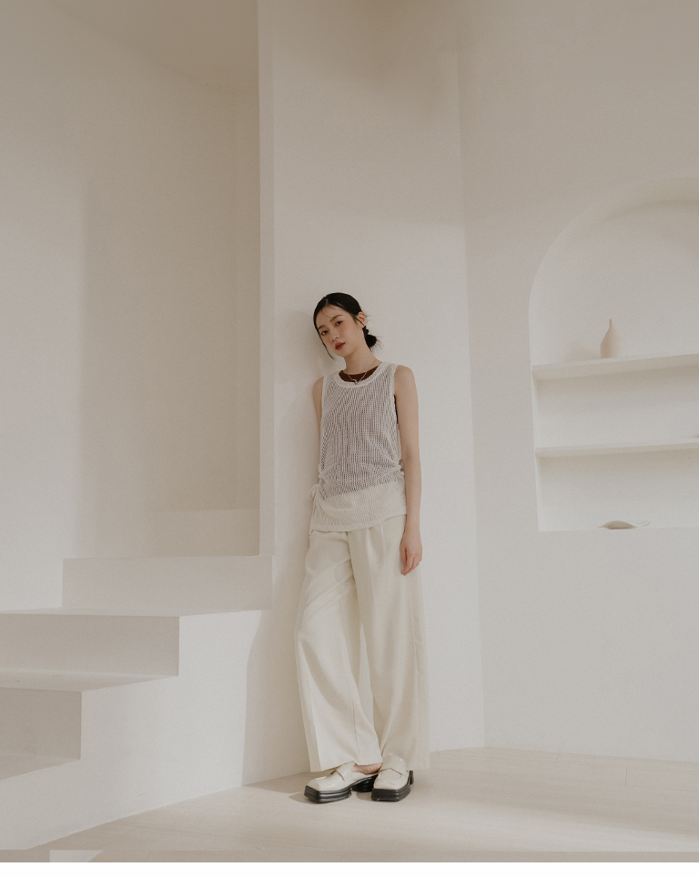 削肩剪裁搭配直條紋 修飾線條更俐落