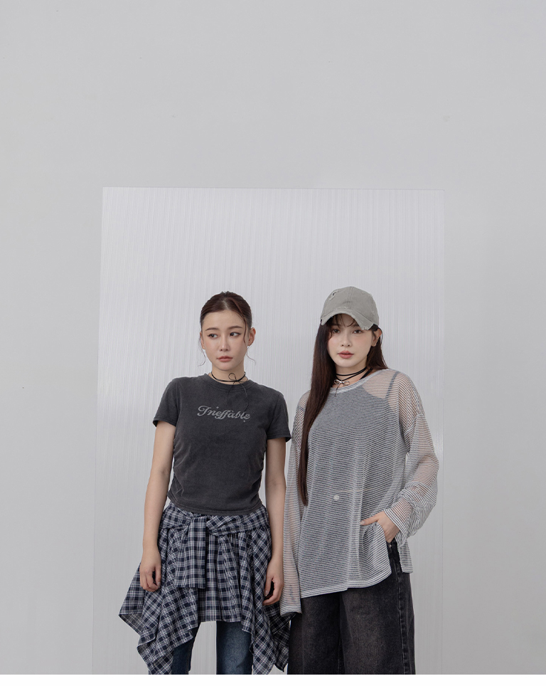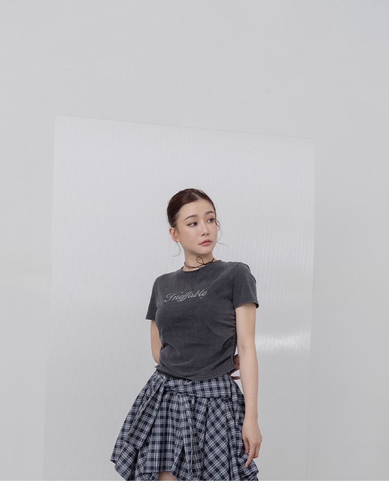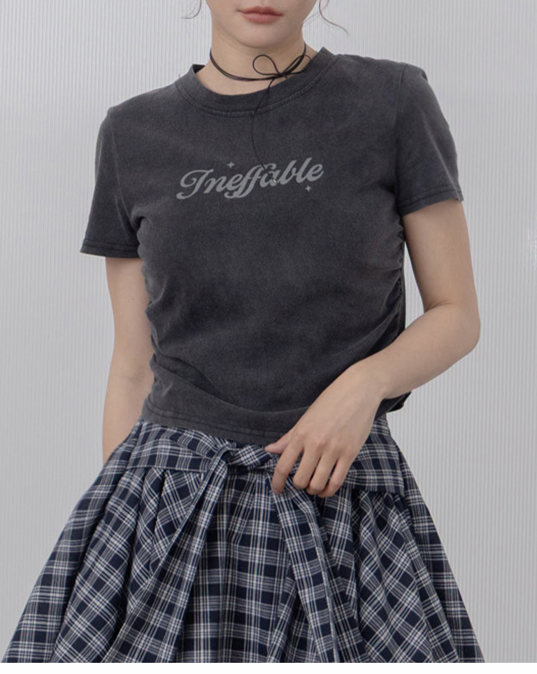 洗水側抓皺設計印字短袖上衣