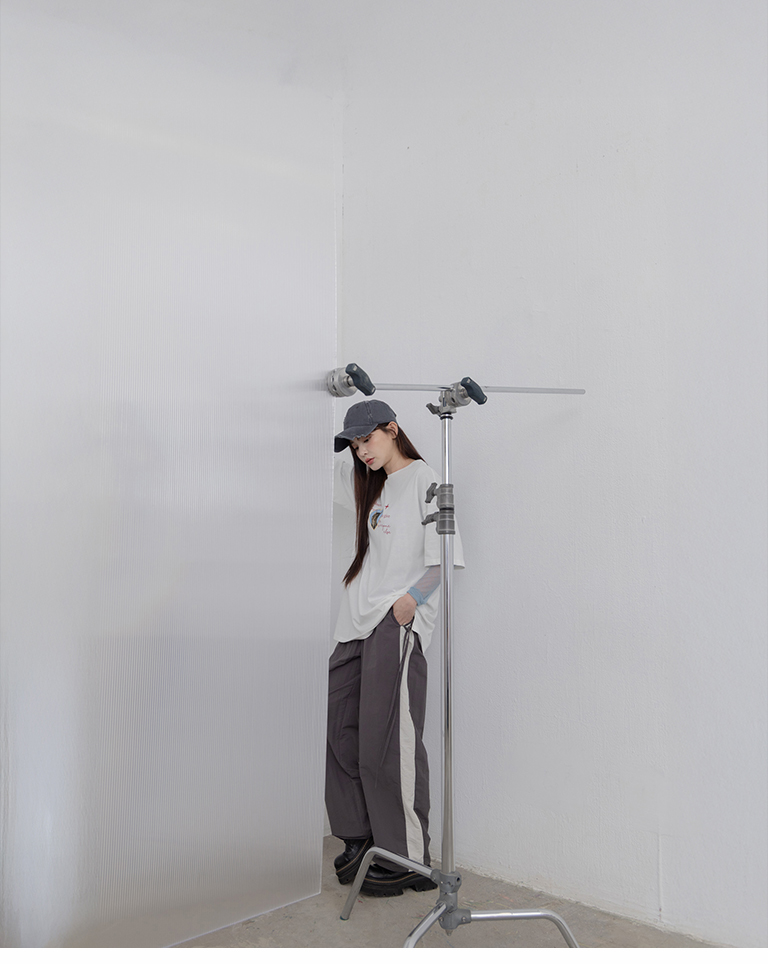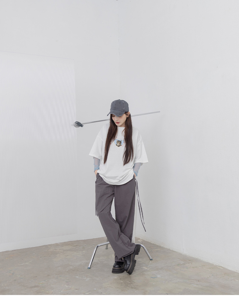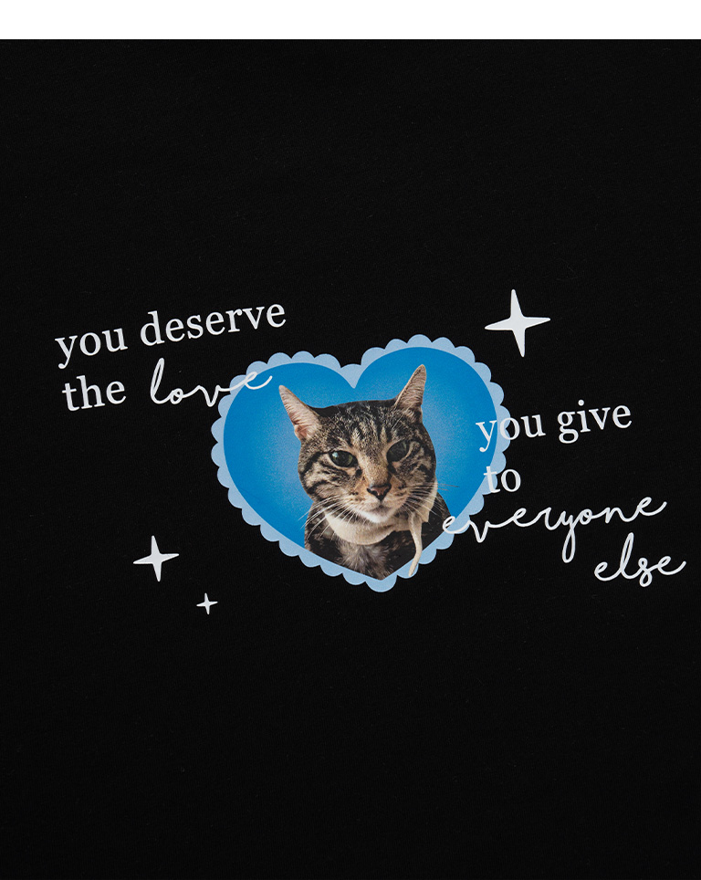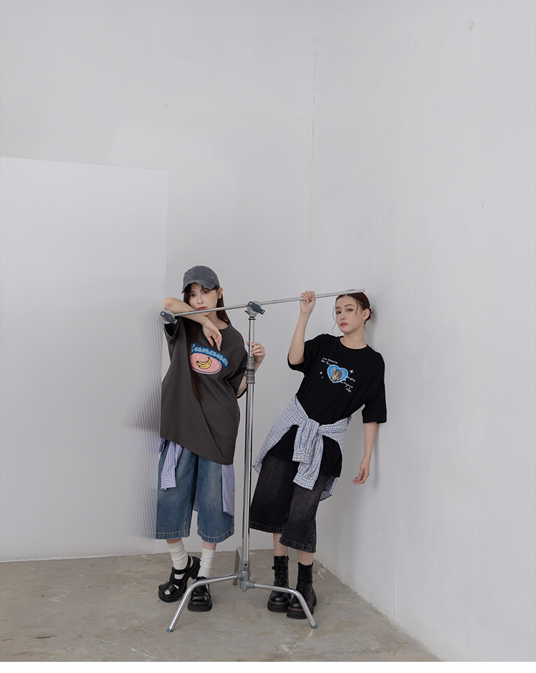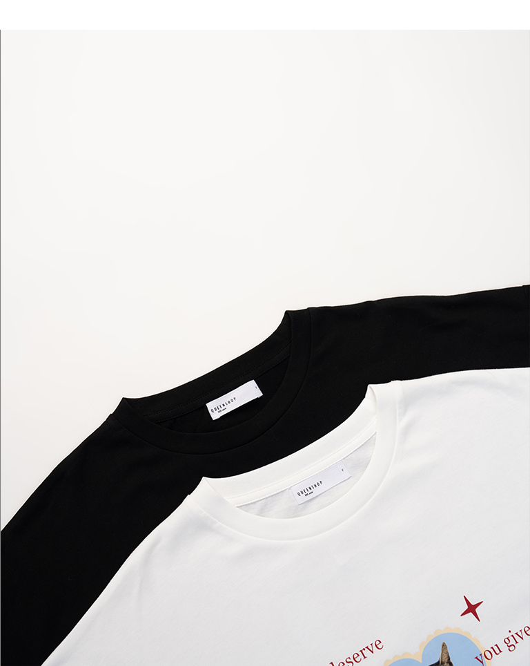 愛心貓咪印圖寬版短袖上衣 兩色售