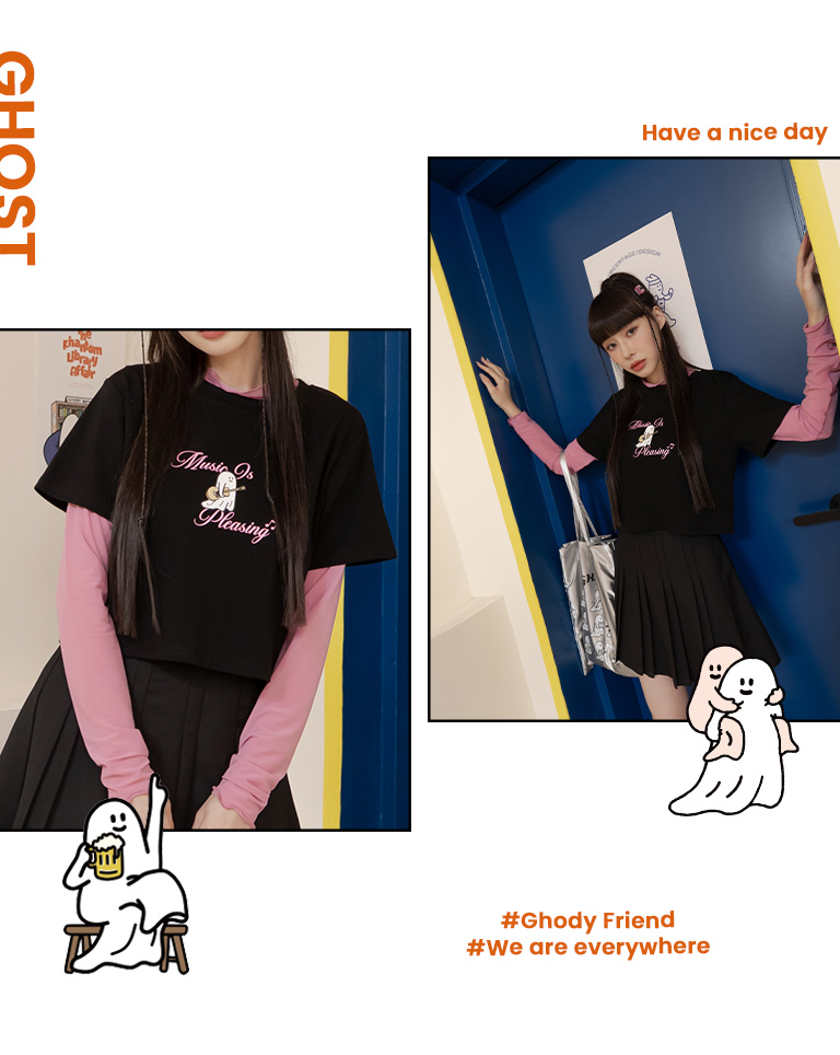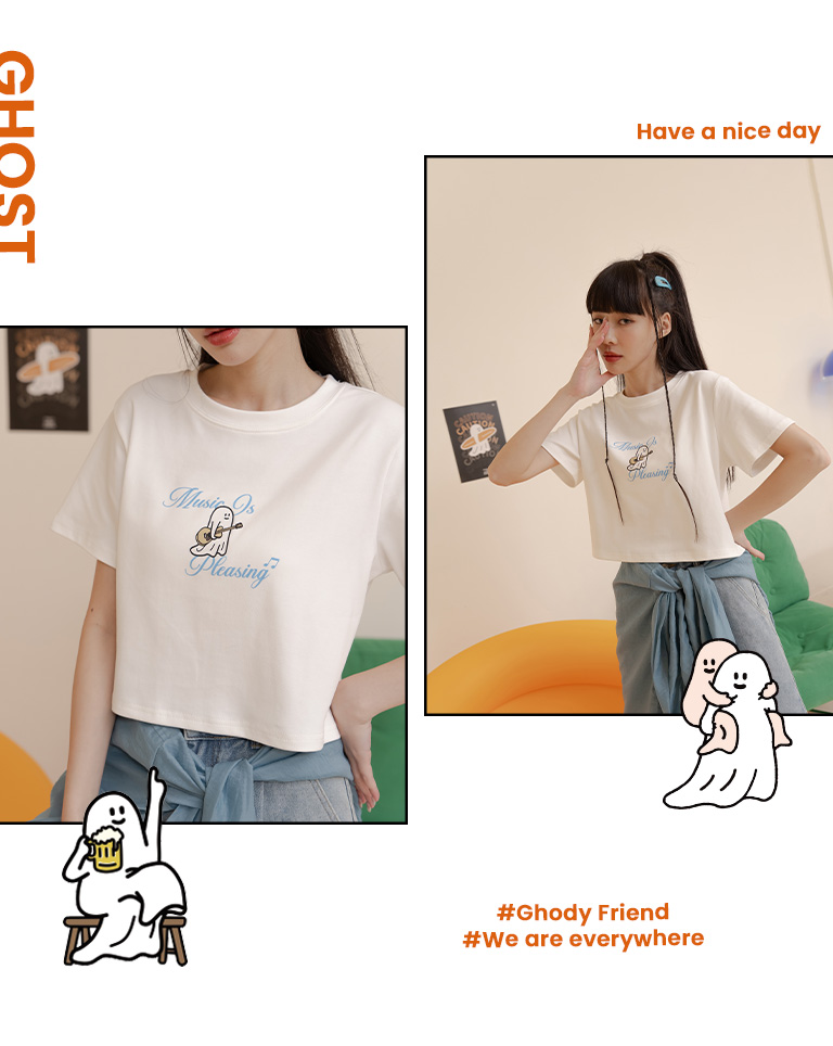 P/D幽靈 吉他幽靈印圖短版上衣 兩色售