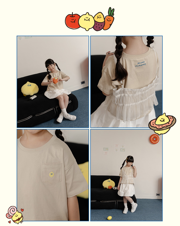 單口袋檸檬刺繡設計 增添小巧點綴滿滿童趣