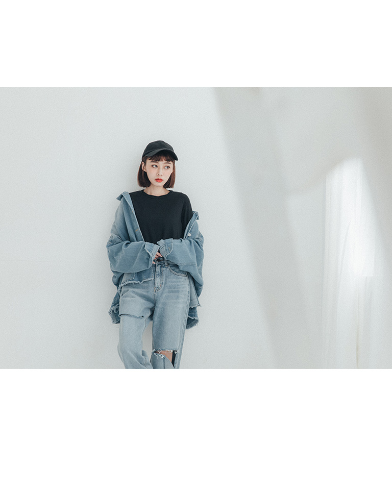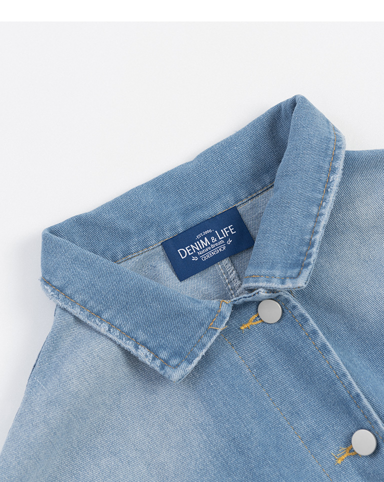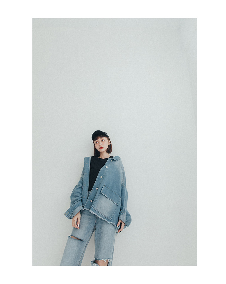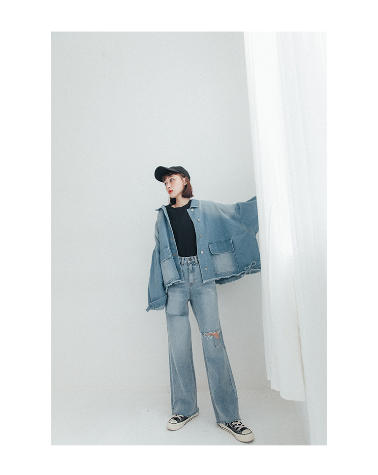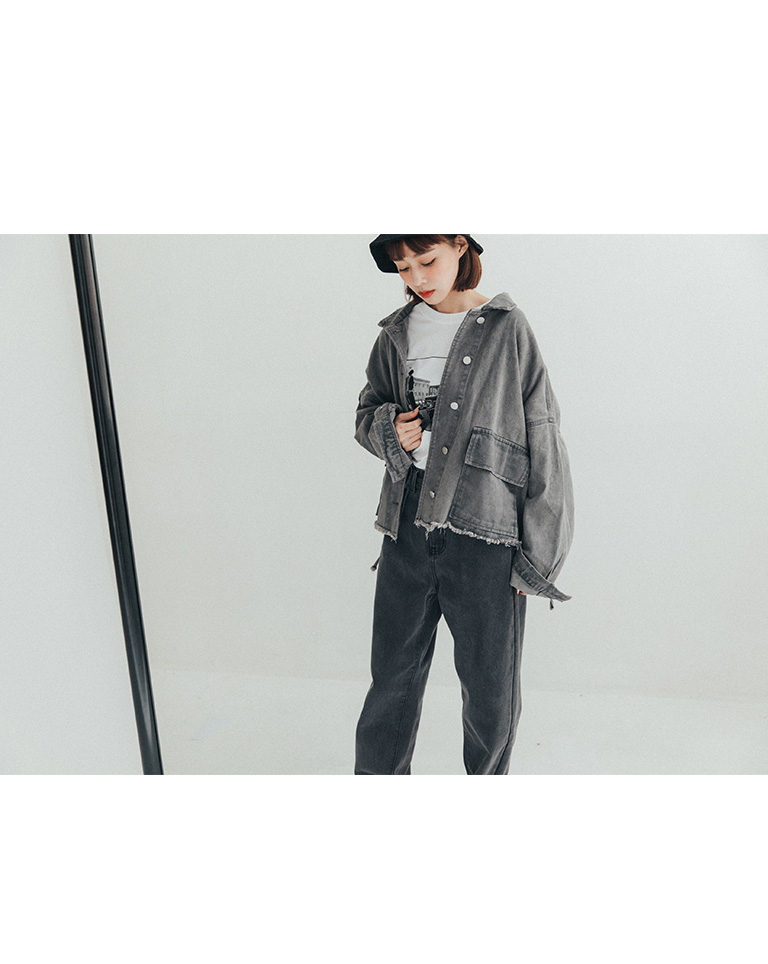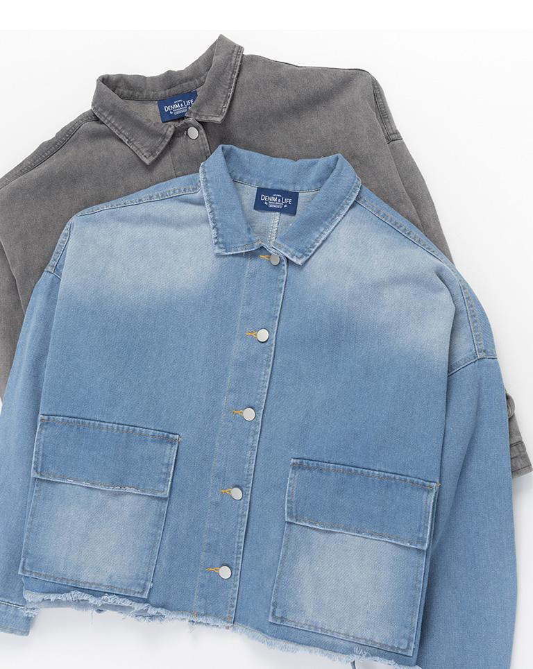 雙口袋鬚邊水洗牛仔外套 兩色售