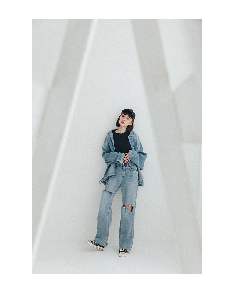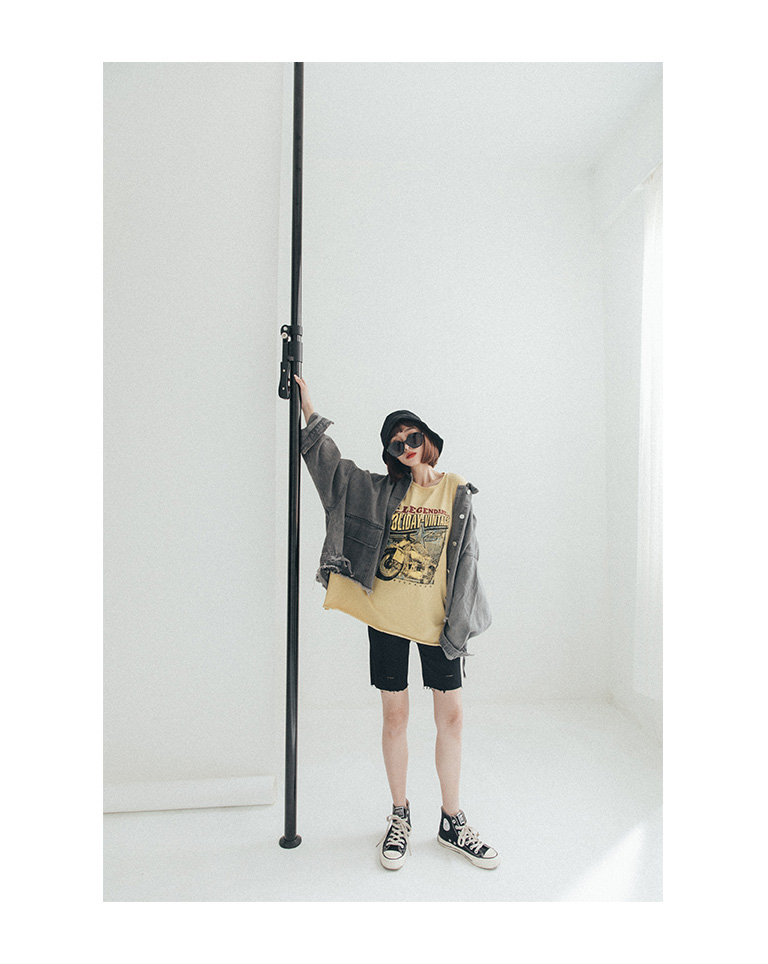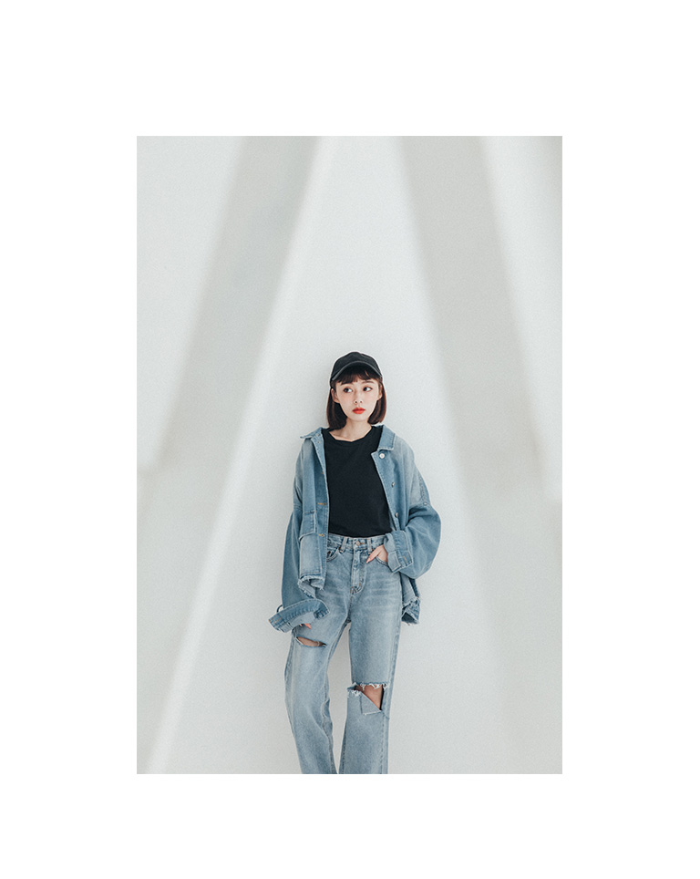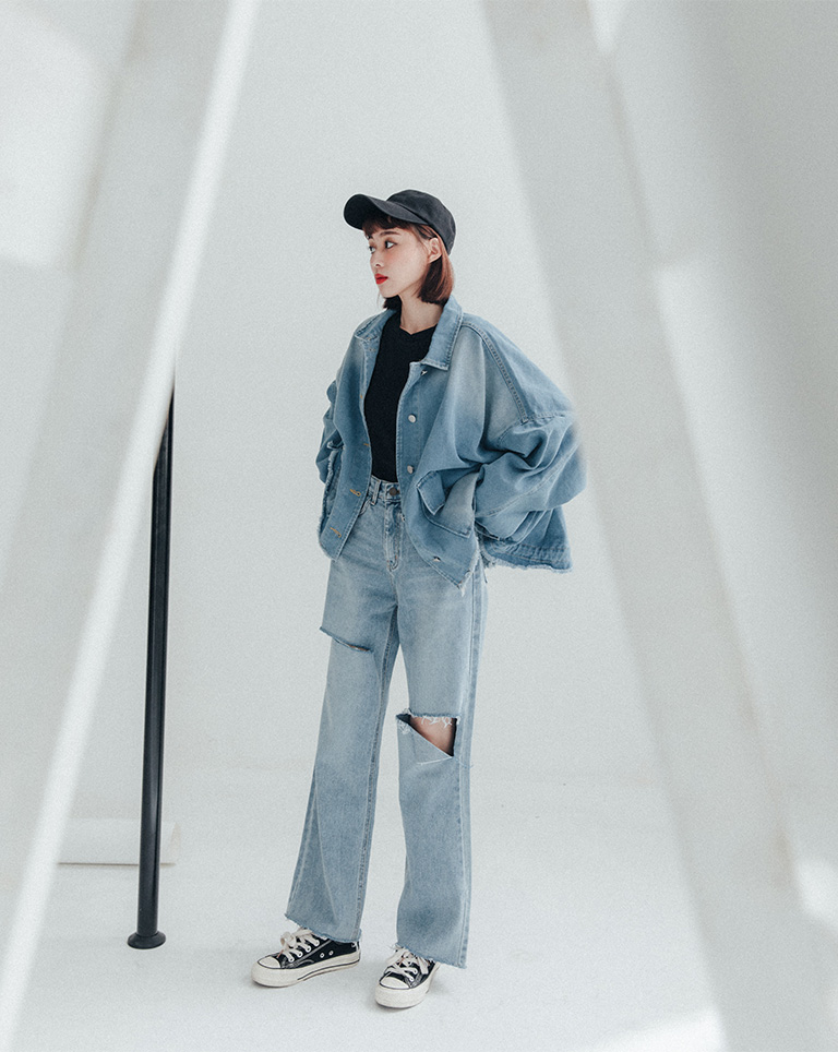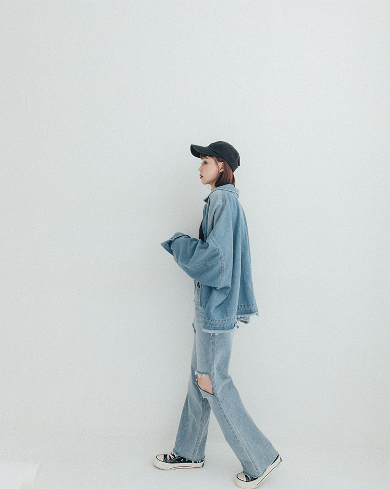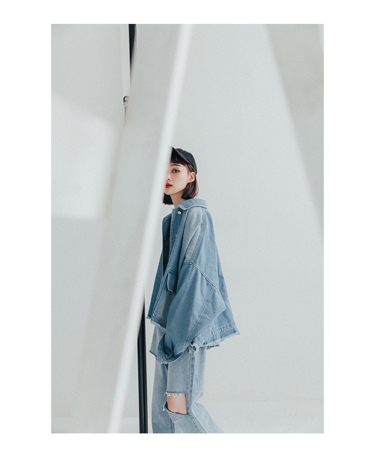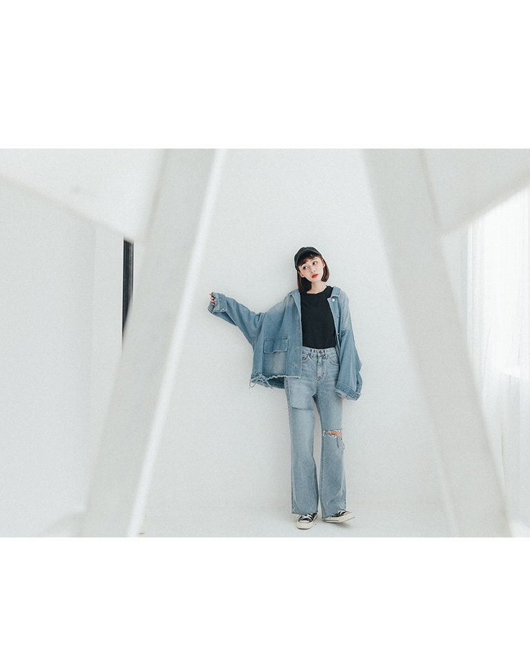 雙口袋鬚邊水洗牛仔外套 兩色售