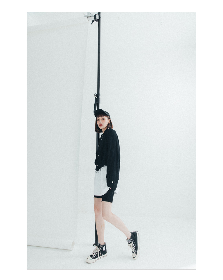 短版立領雙口袋鬚邊襯衫外套 兩色售