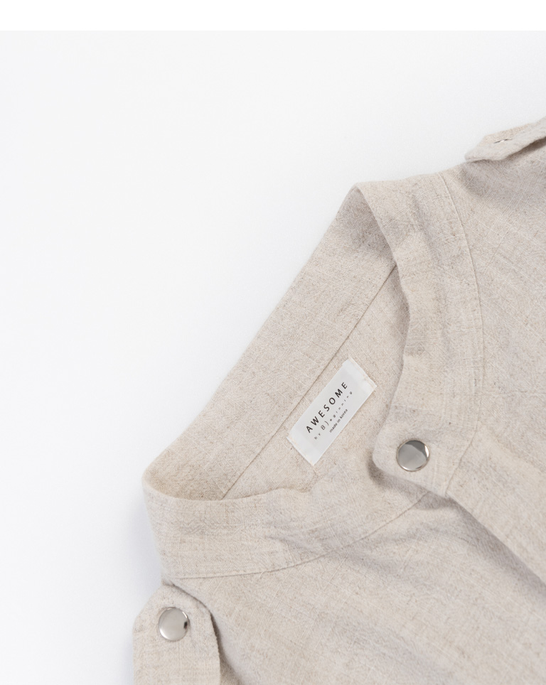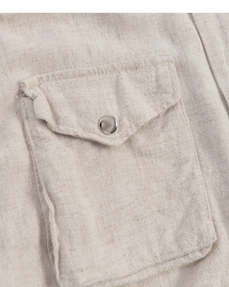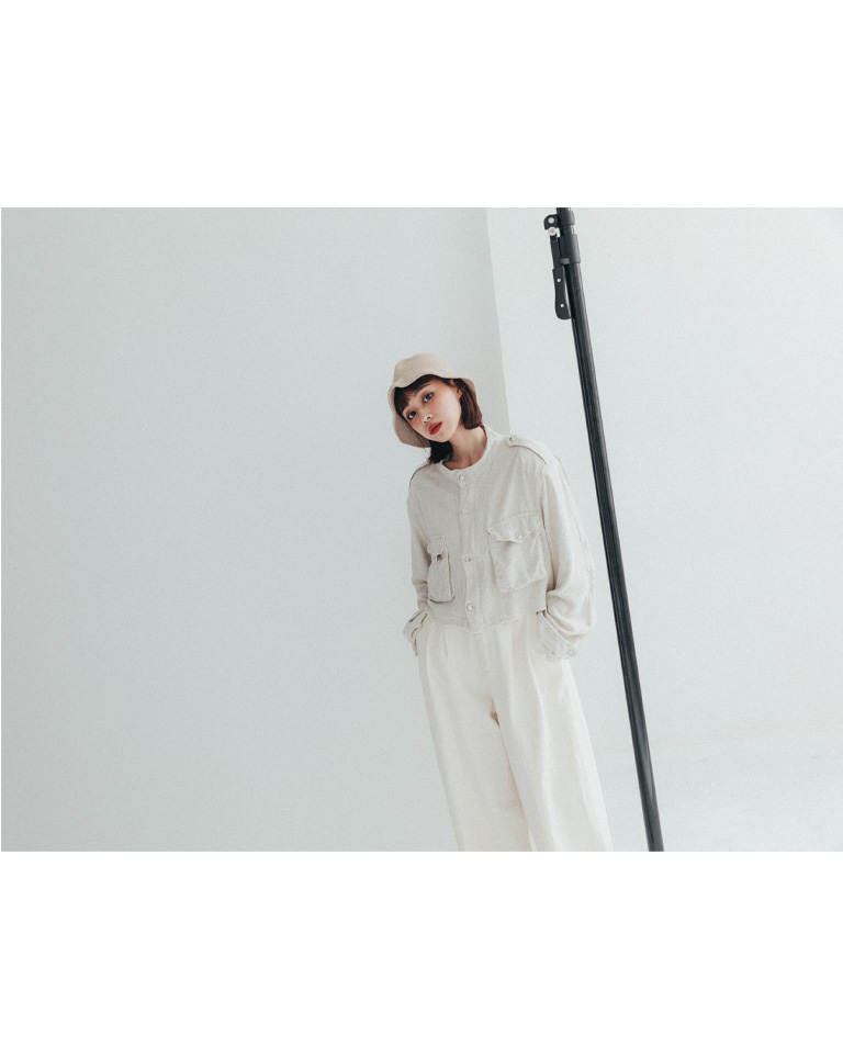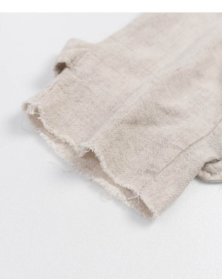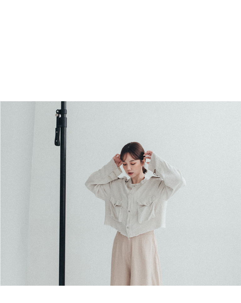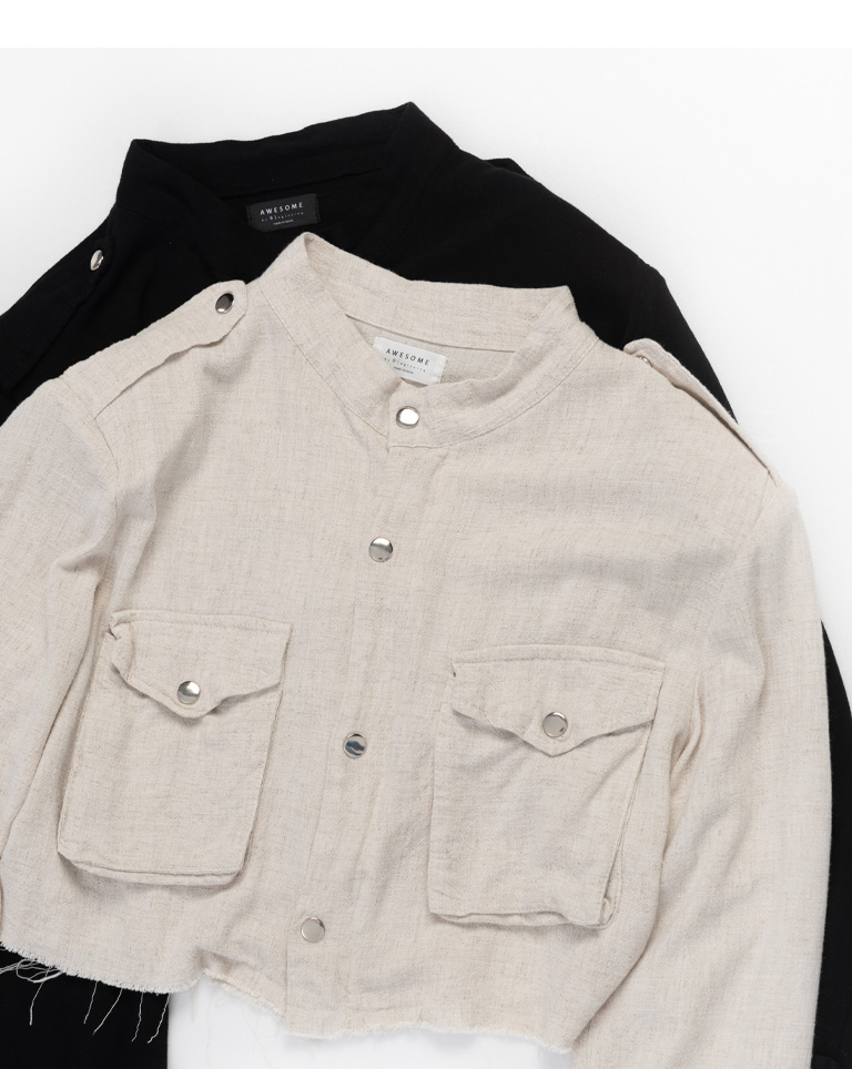 短版立領雙口袋鬚邊襯衫外套