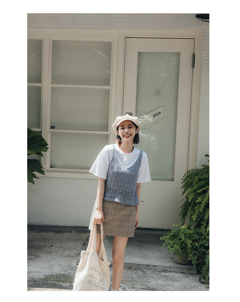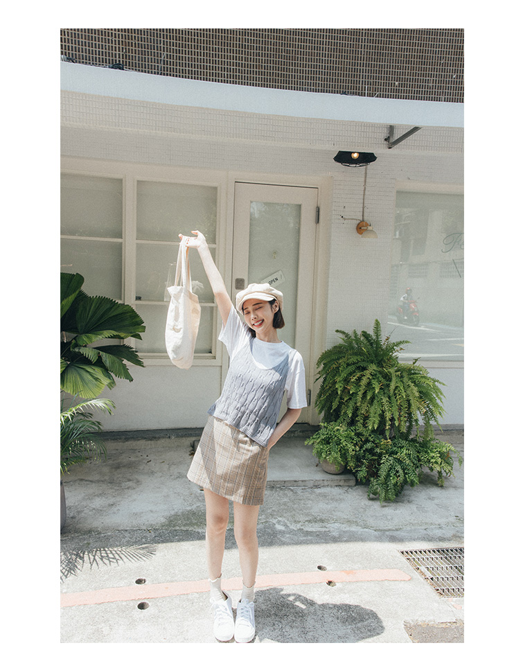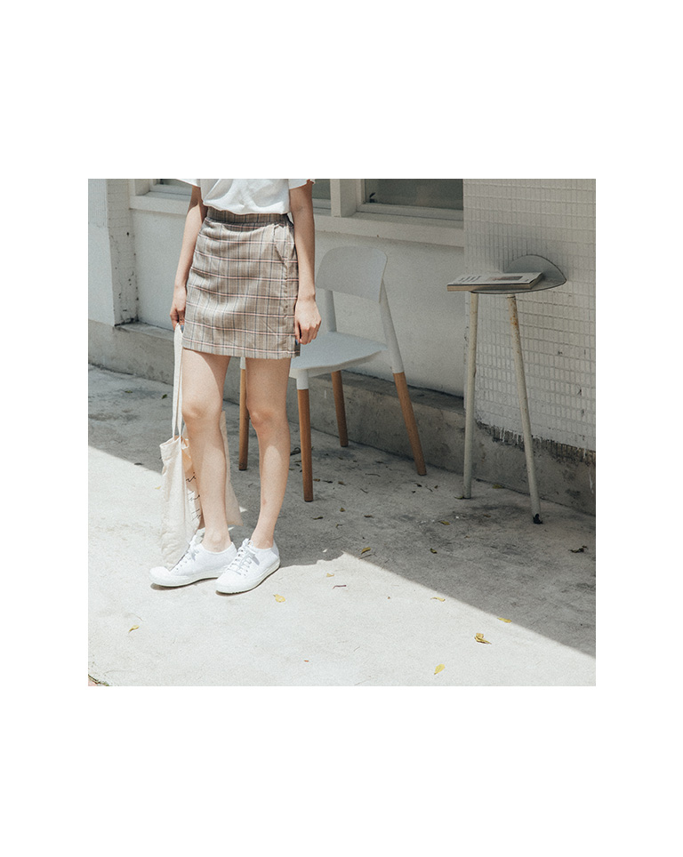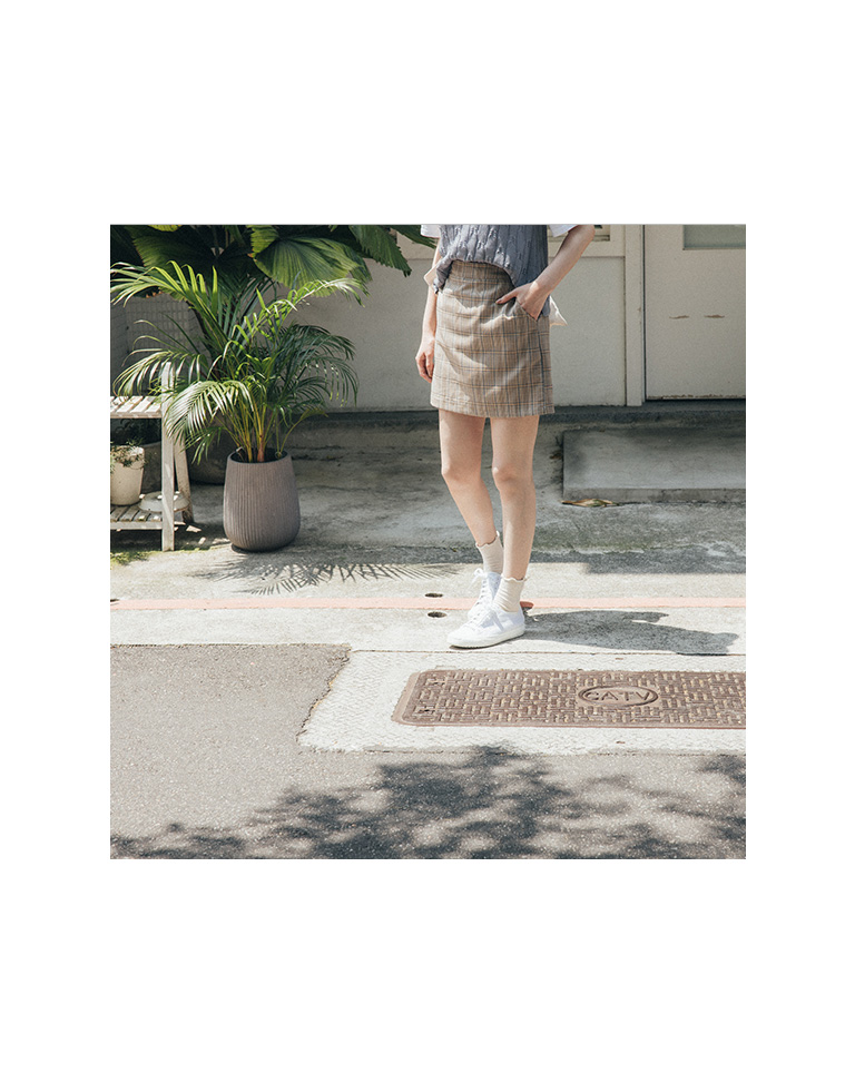 粉嫩色系格紋短裙 兩色售 S/M/L