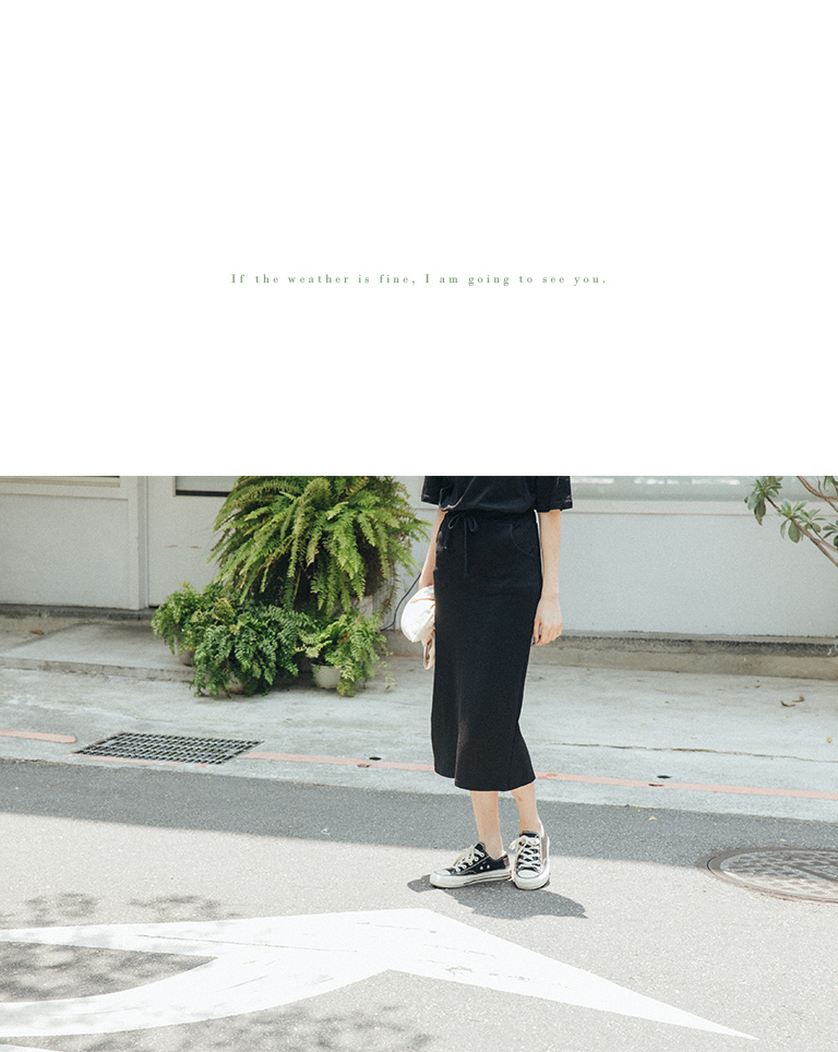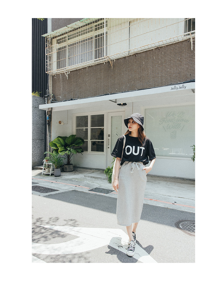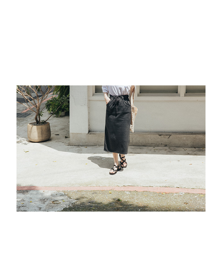 雙口袋後開岔抽繩長裙 三色售