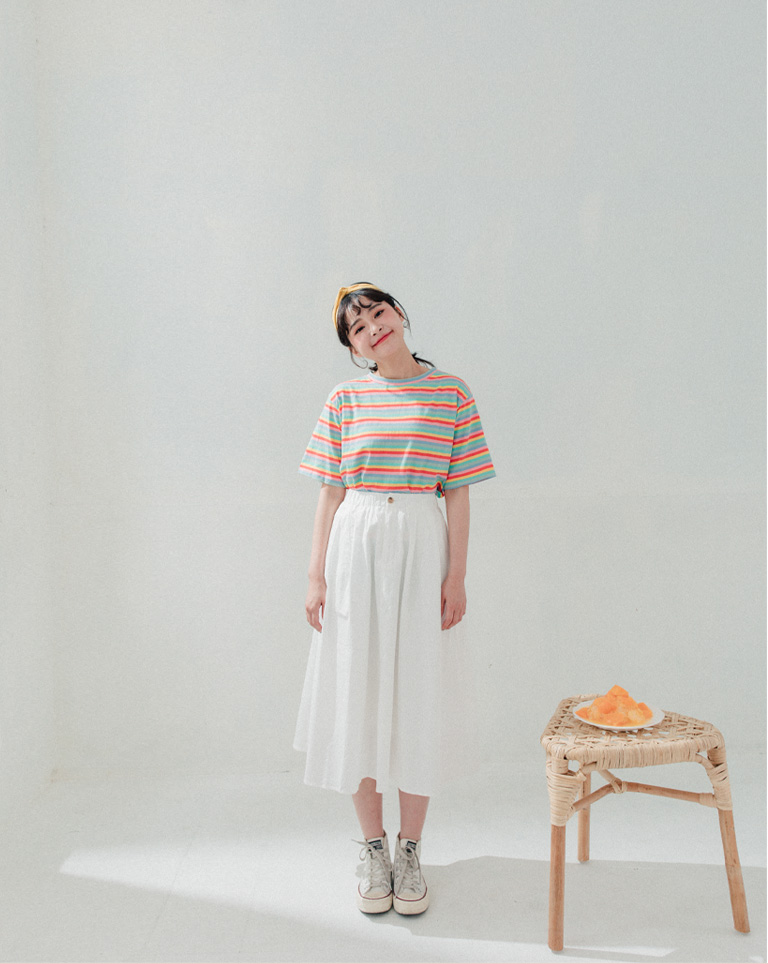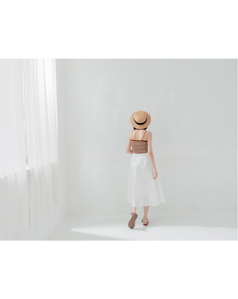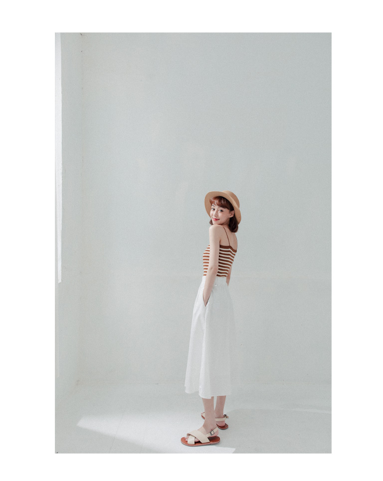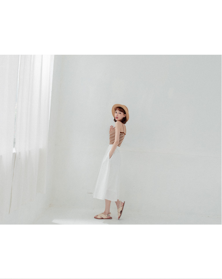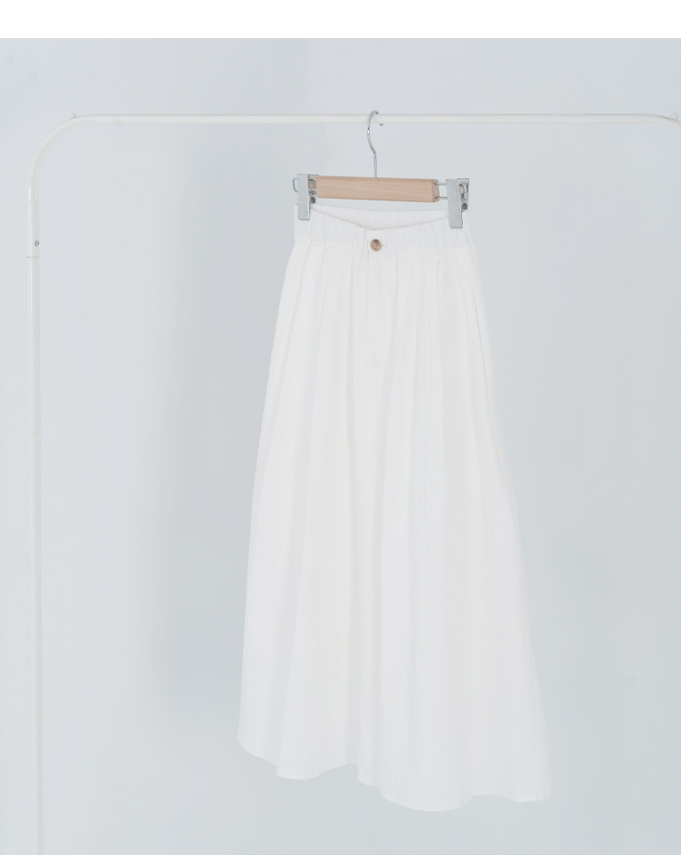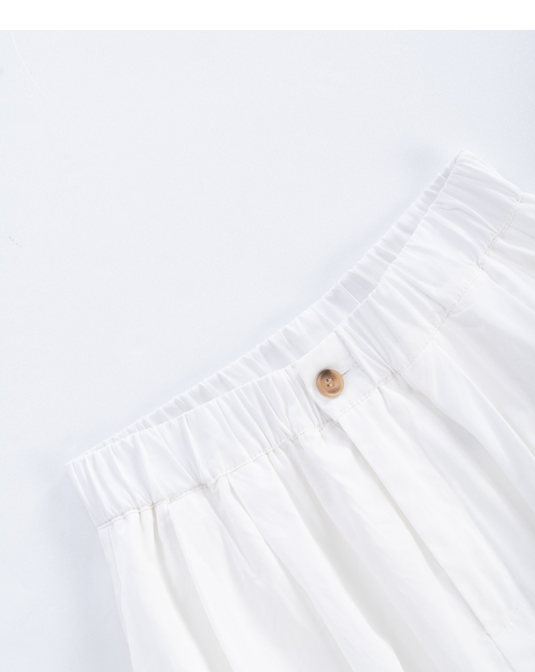 素面打摺鬆緊設計白長裙