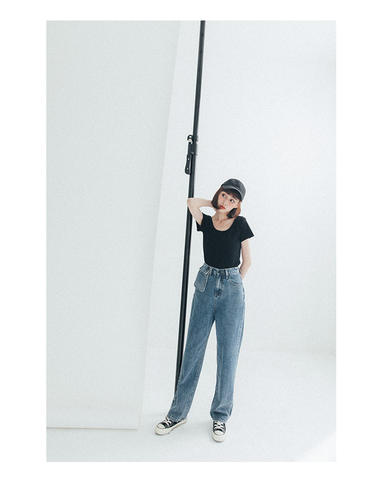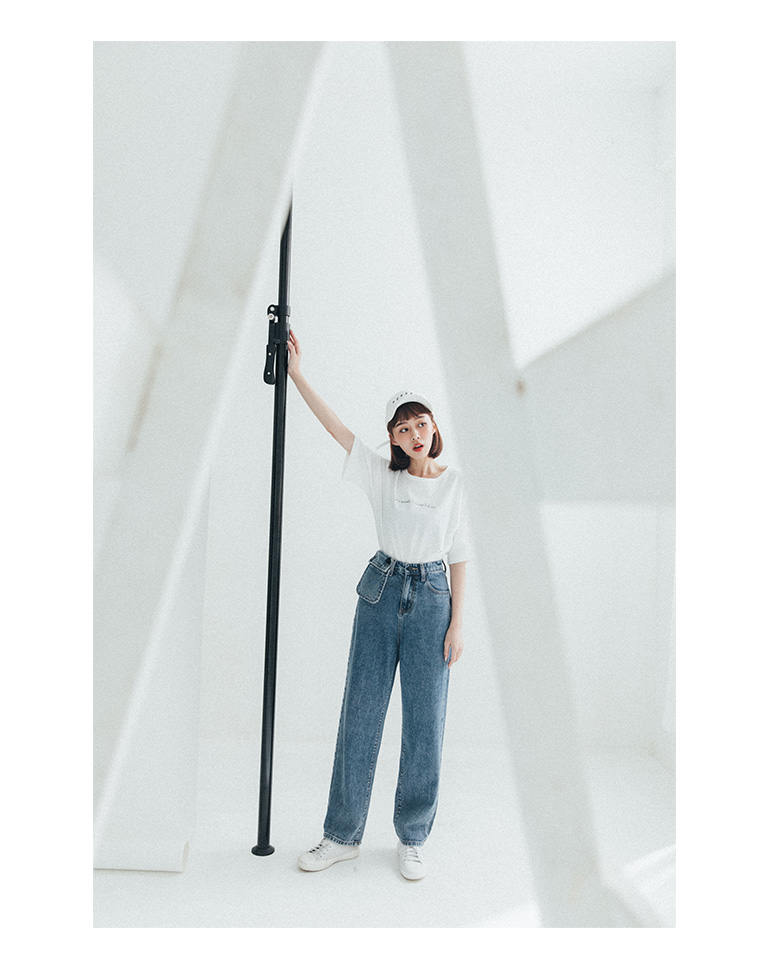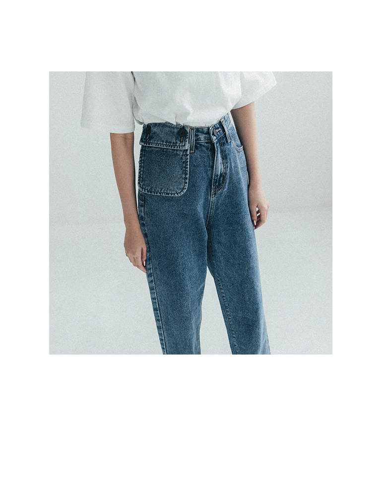 立體小口袋造型刷色牛仔褲