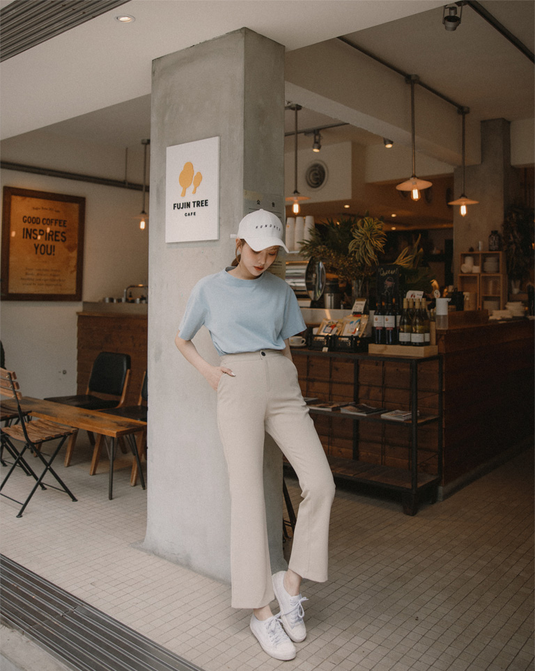簡約素色修身九分褲