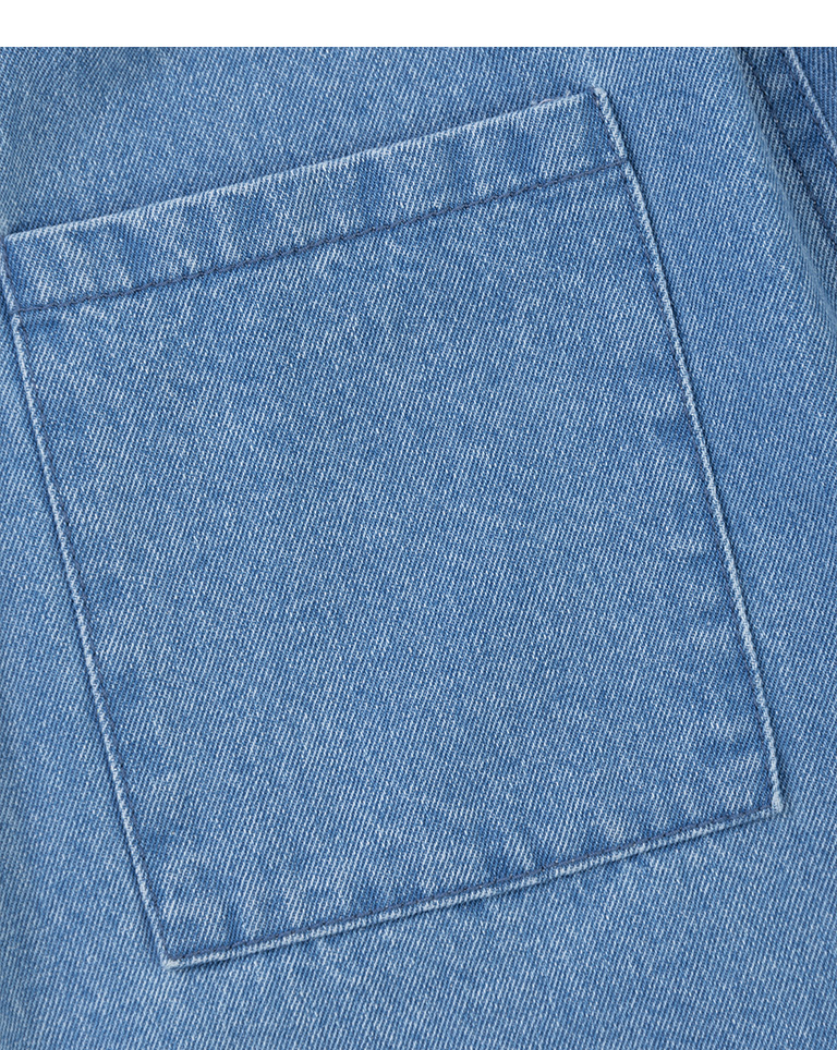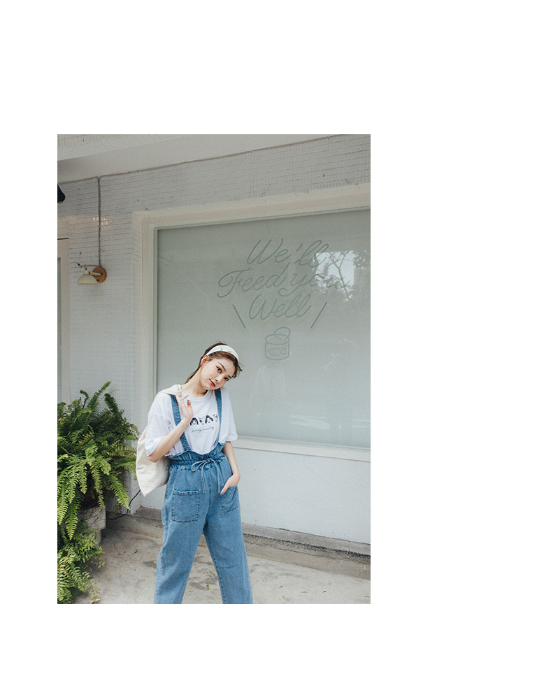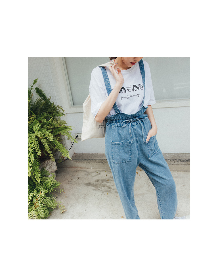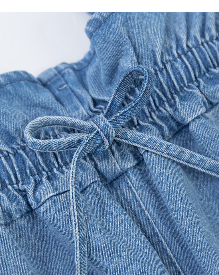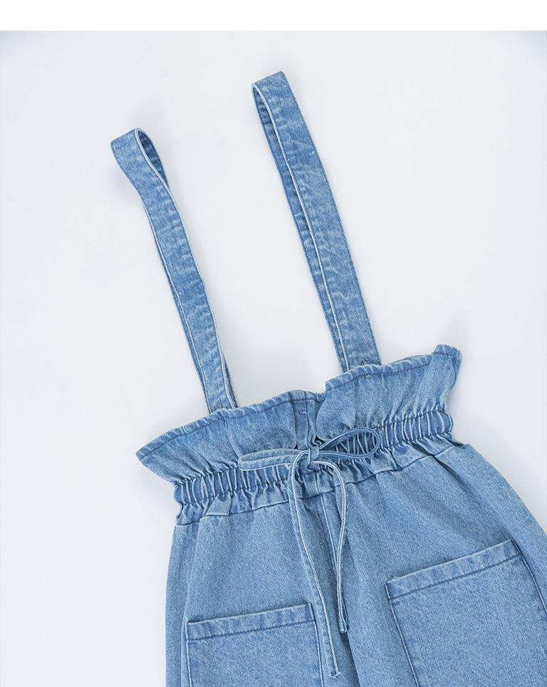 荷葉造型抽繩牛仔吊帶褲