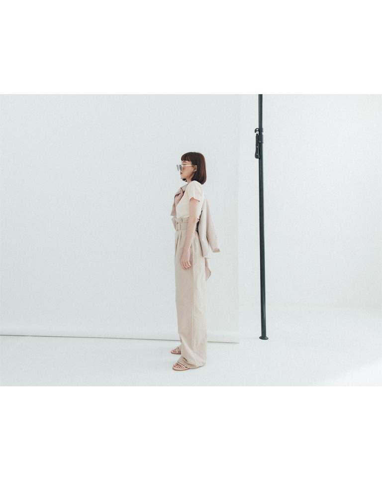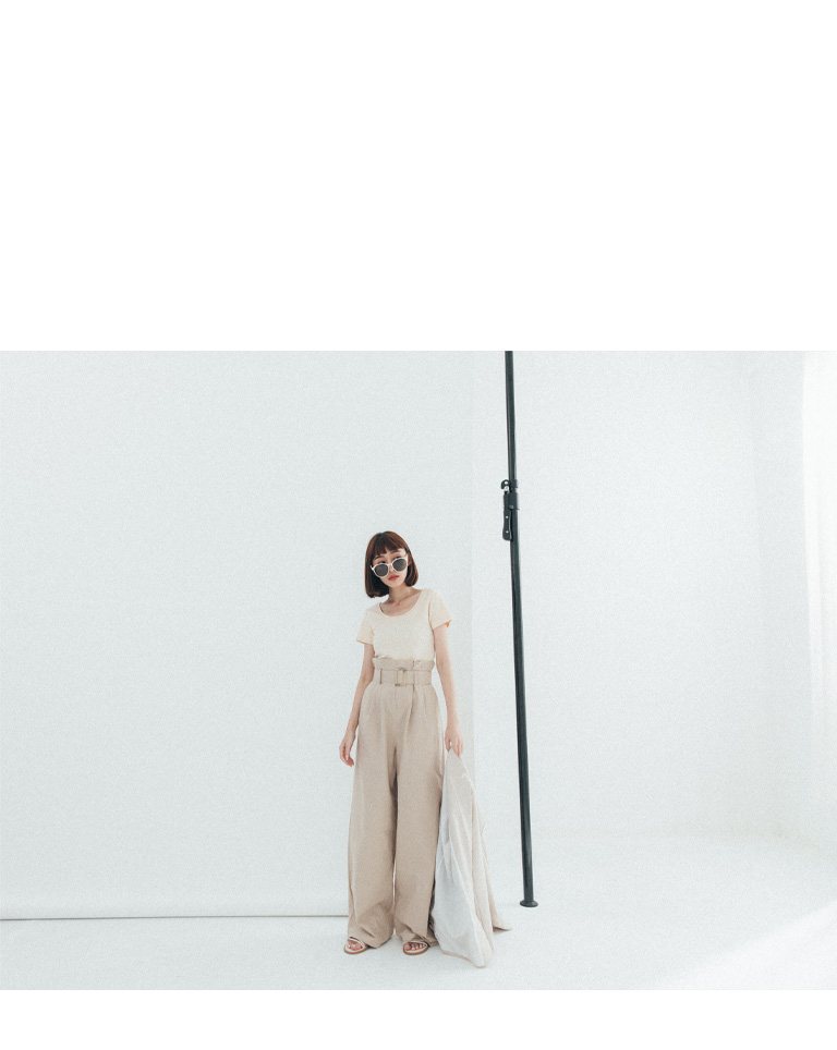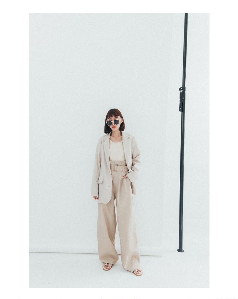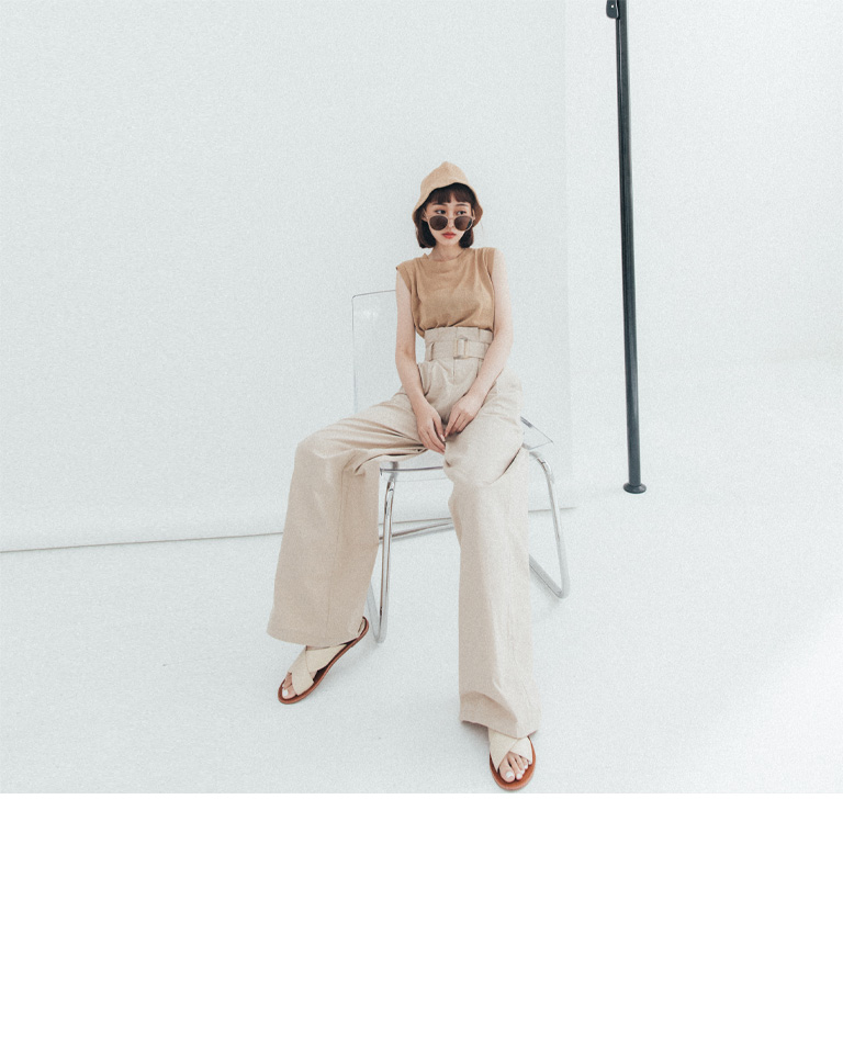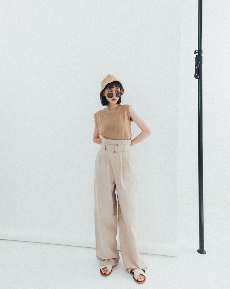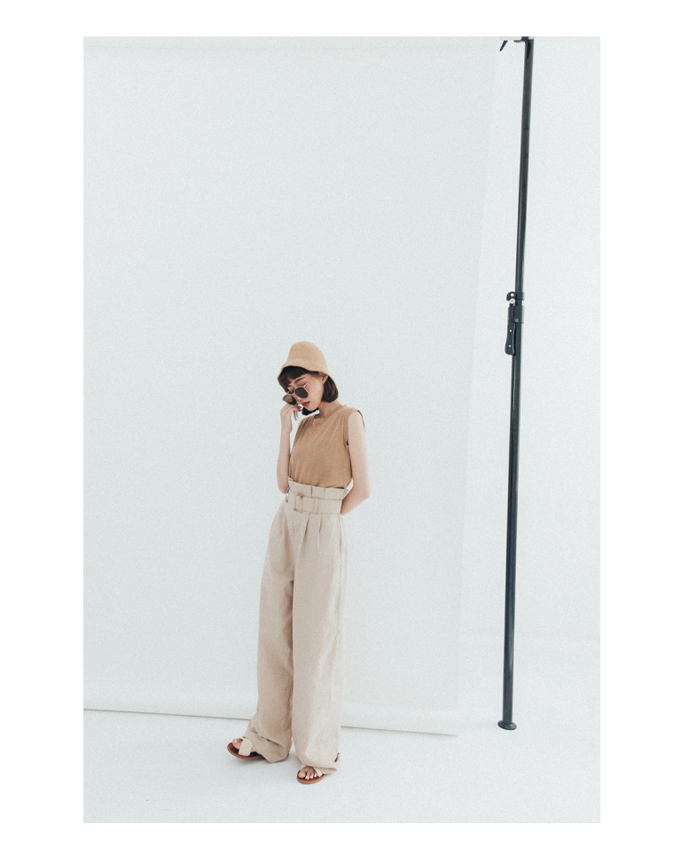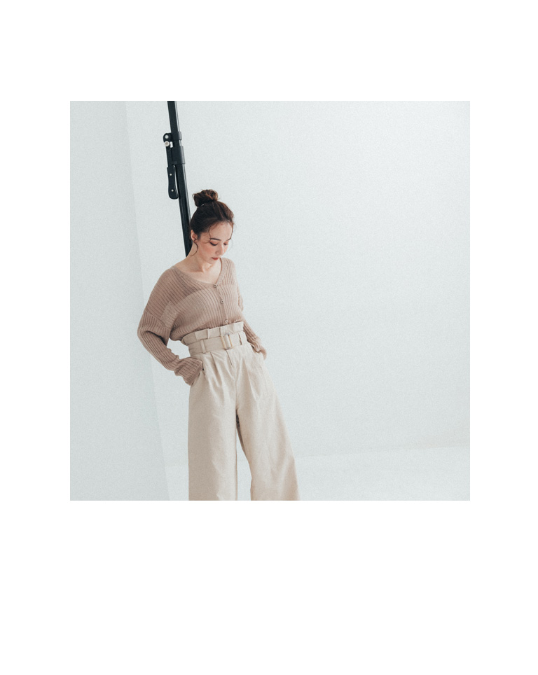 附腰帶花苞設計卡其長褲 S/M/L