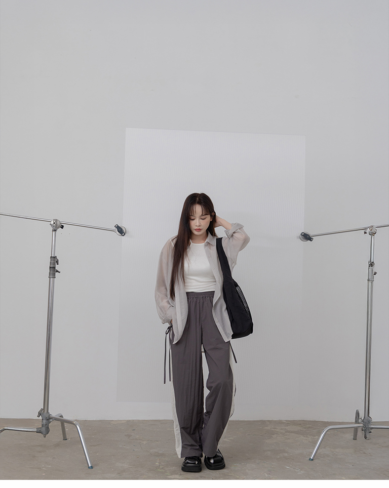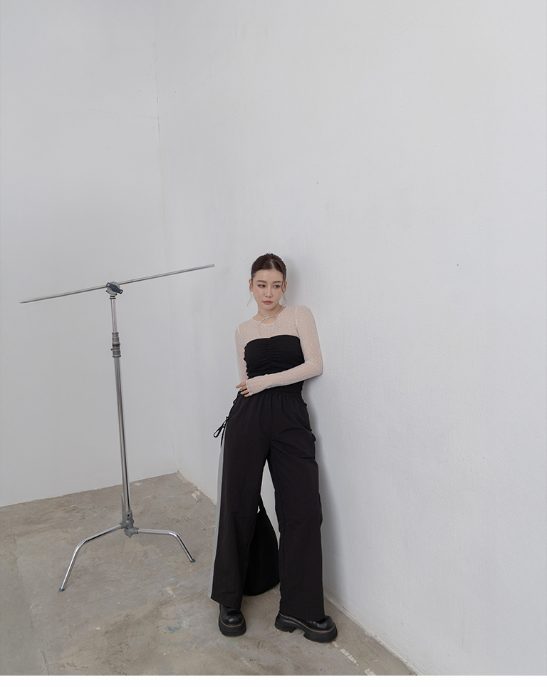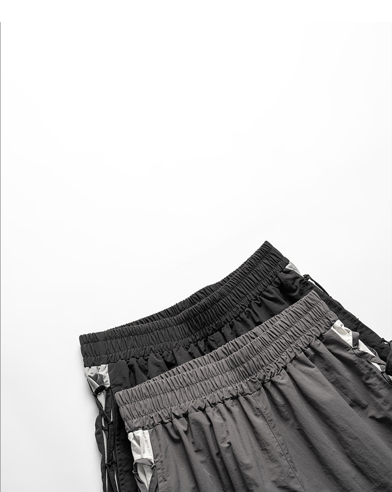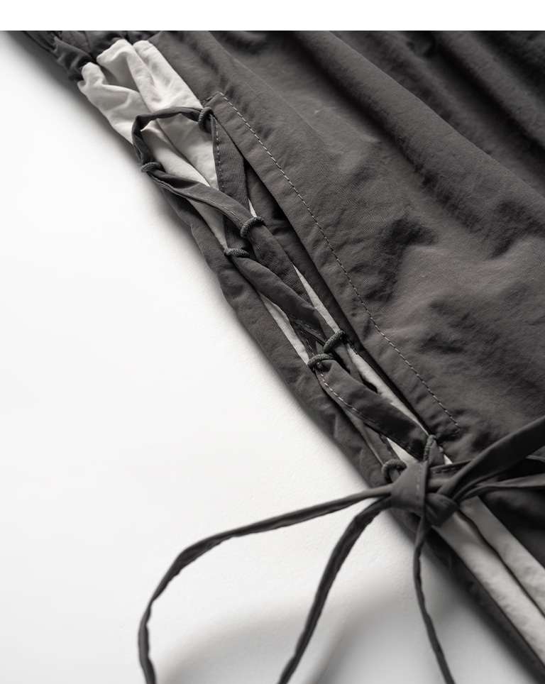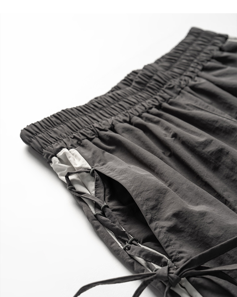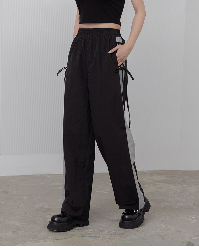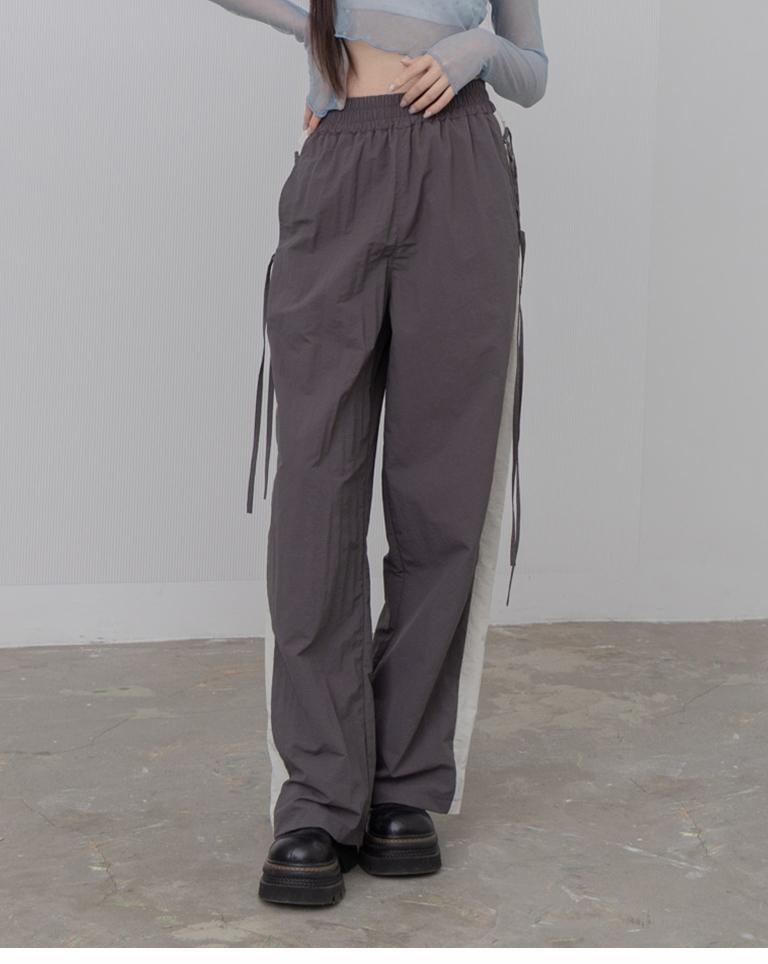 側撞色拼接交叉綁帶長褲