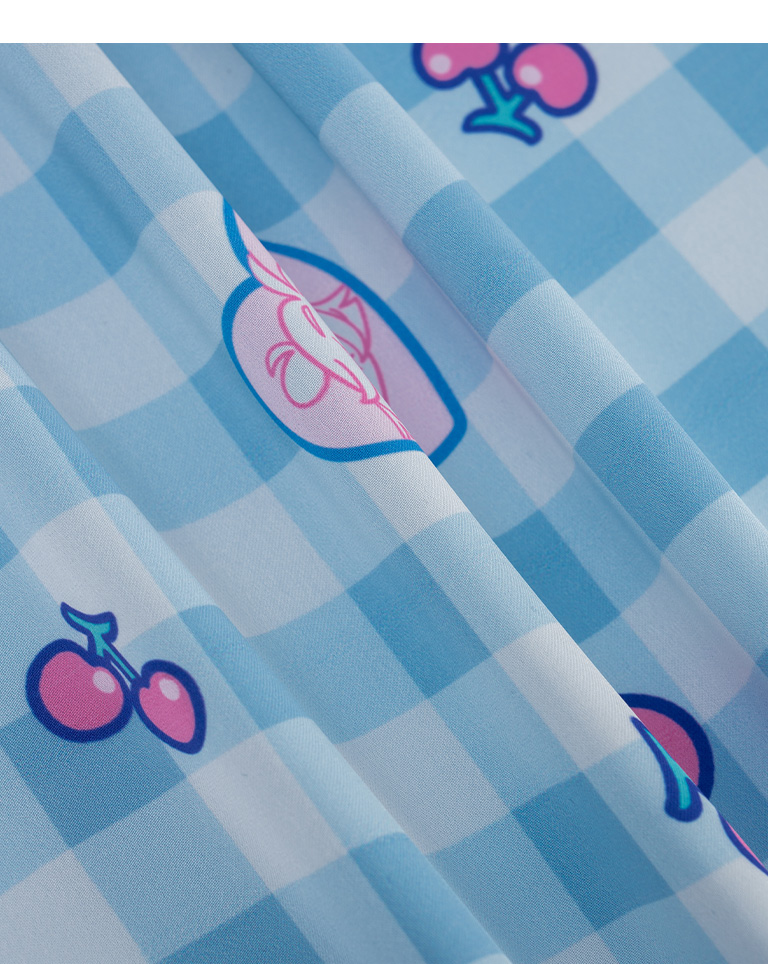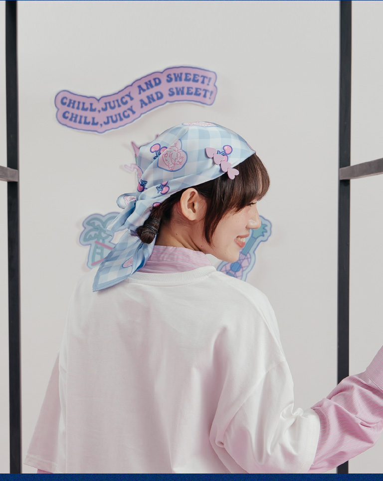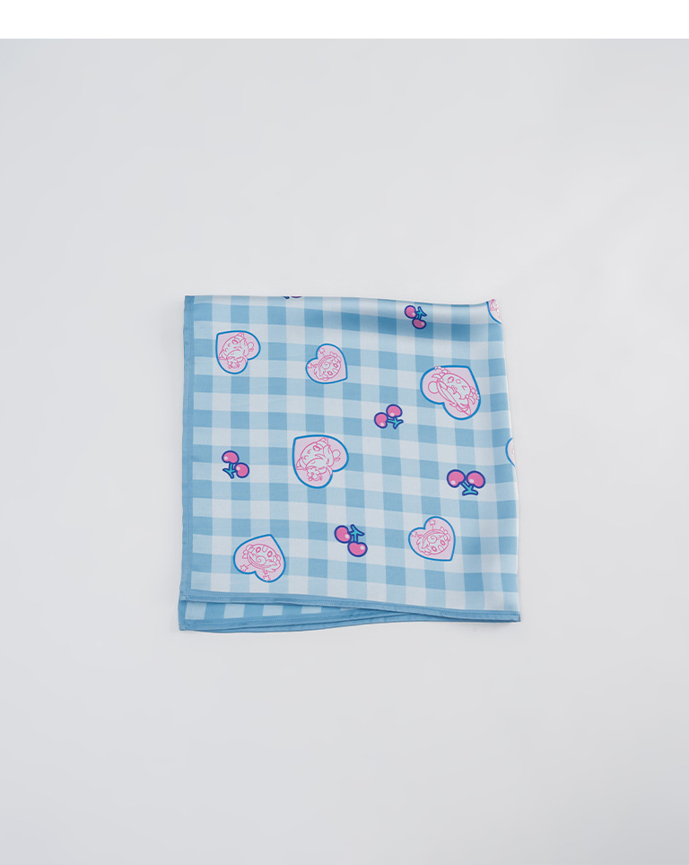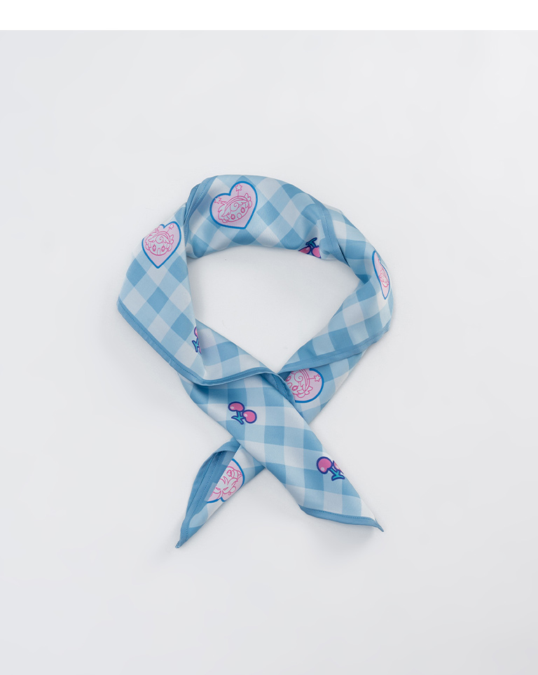 寬片片 格紋櫻桃愛心美少女印圖絲巾