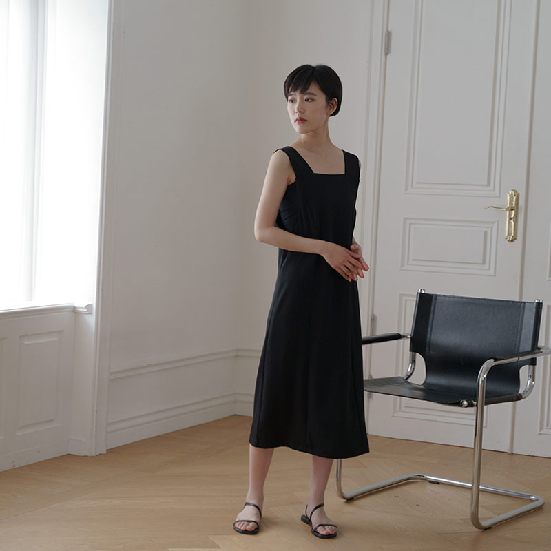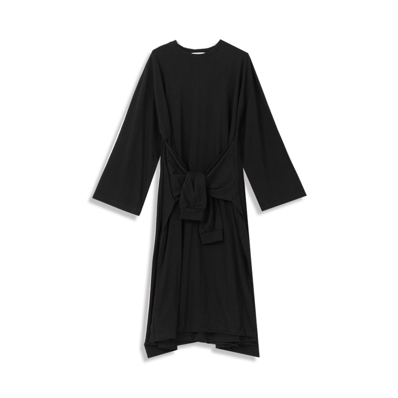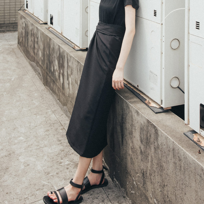 腰綁帶設計黑長裙