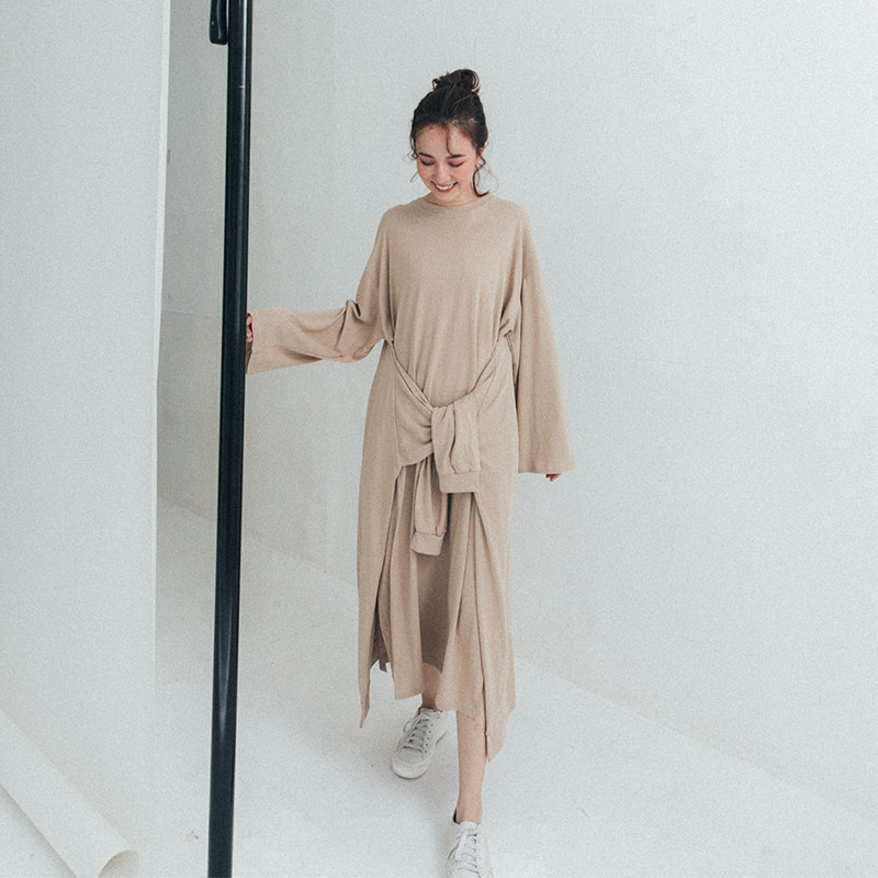 純色綁結假兩件設計洋裝 兩色售