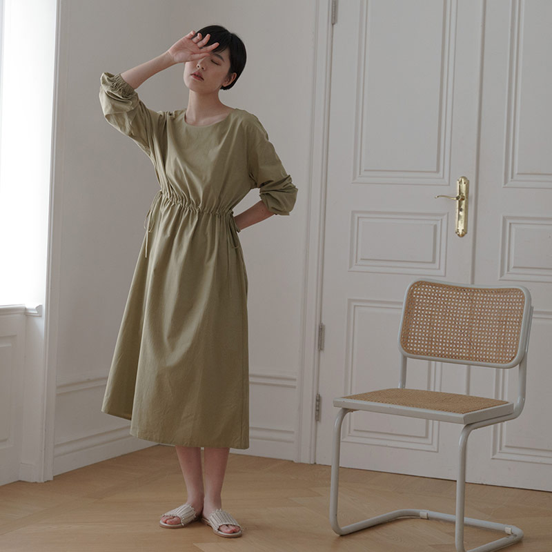 純色綁帶設計棉質洋裝 兩色售