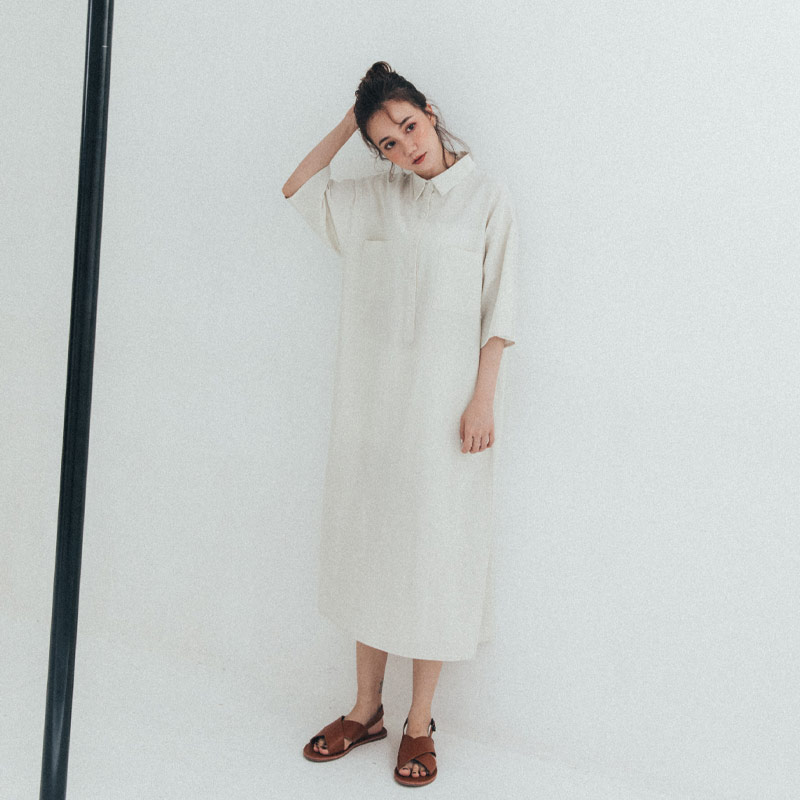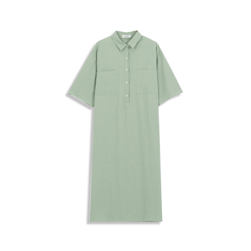 襯衫領雙口袋造型洋裝 兩色售