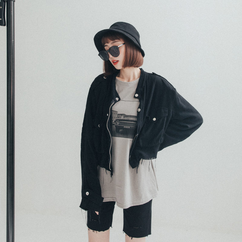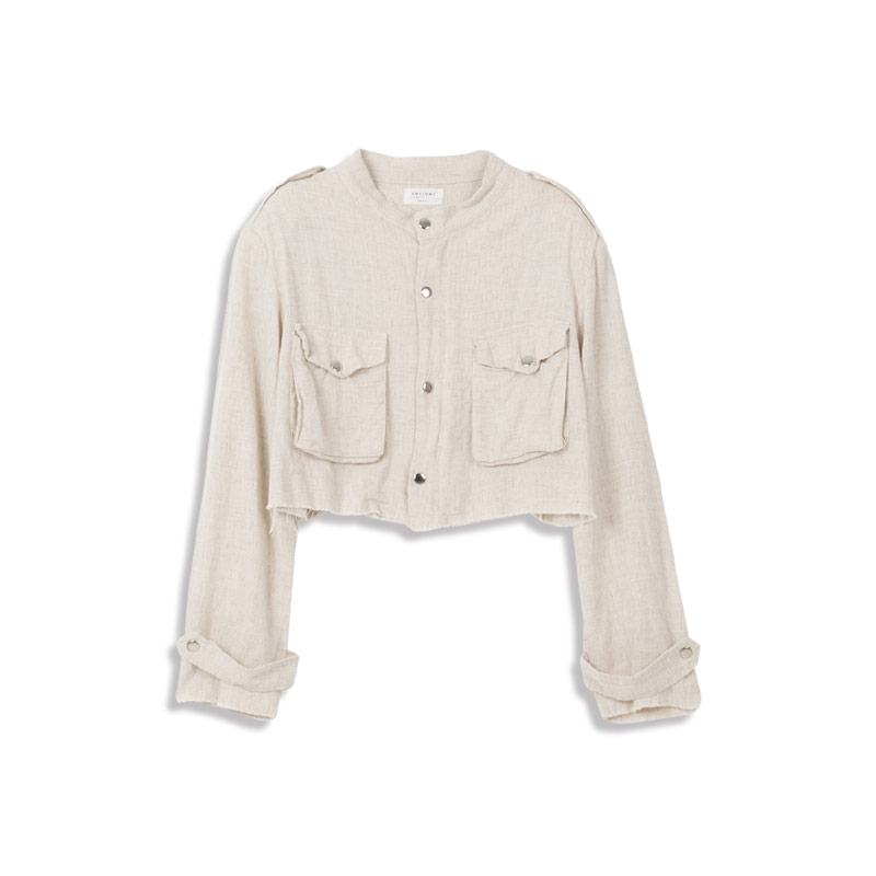 短版立領雙口袋鬚邊襯衫外套 兩色售